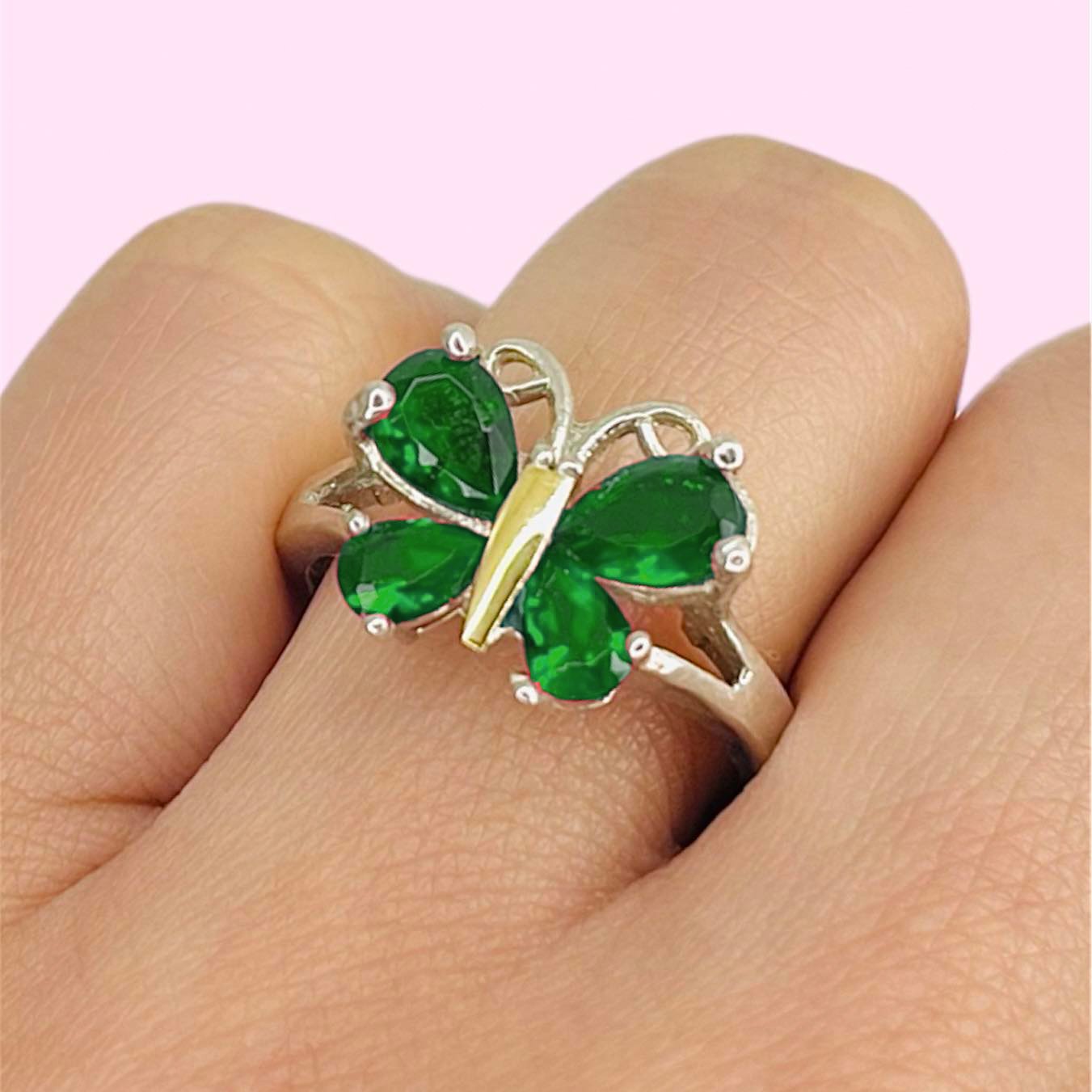 Anillo mariposa con cubic esmeralda Plata y Oro