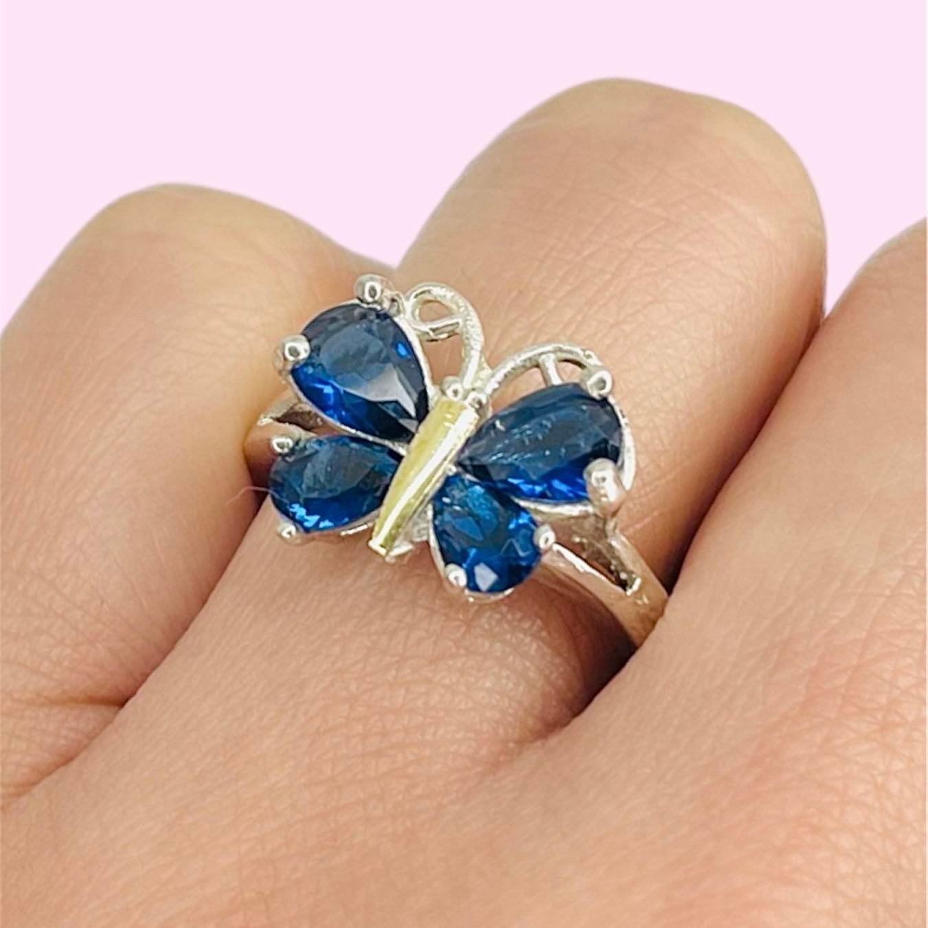 Anillo mariposa con cubic zafiro Plata y Oro