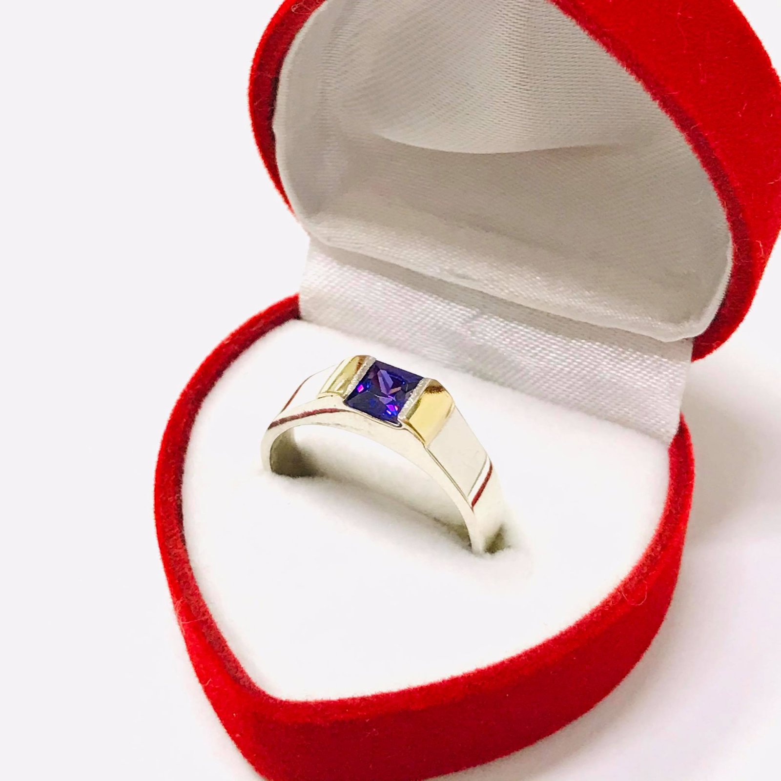 Anillo sello con piedra cuadrada amatista unisex Plata y Oro