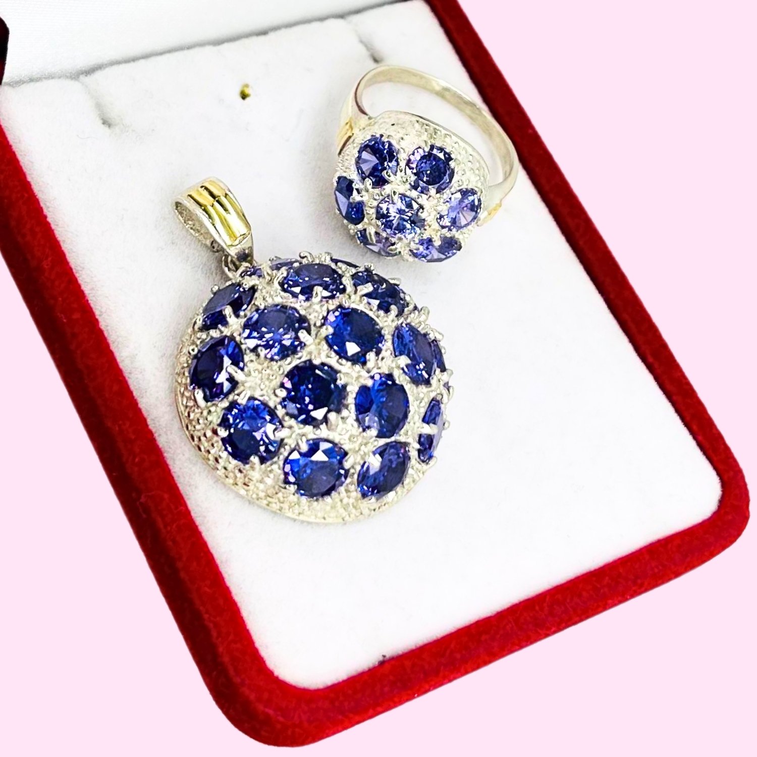 Artículo: KIT 014-4Conjunto Dije y anillo Frutillon con cubic amatista