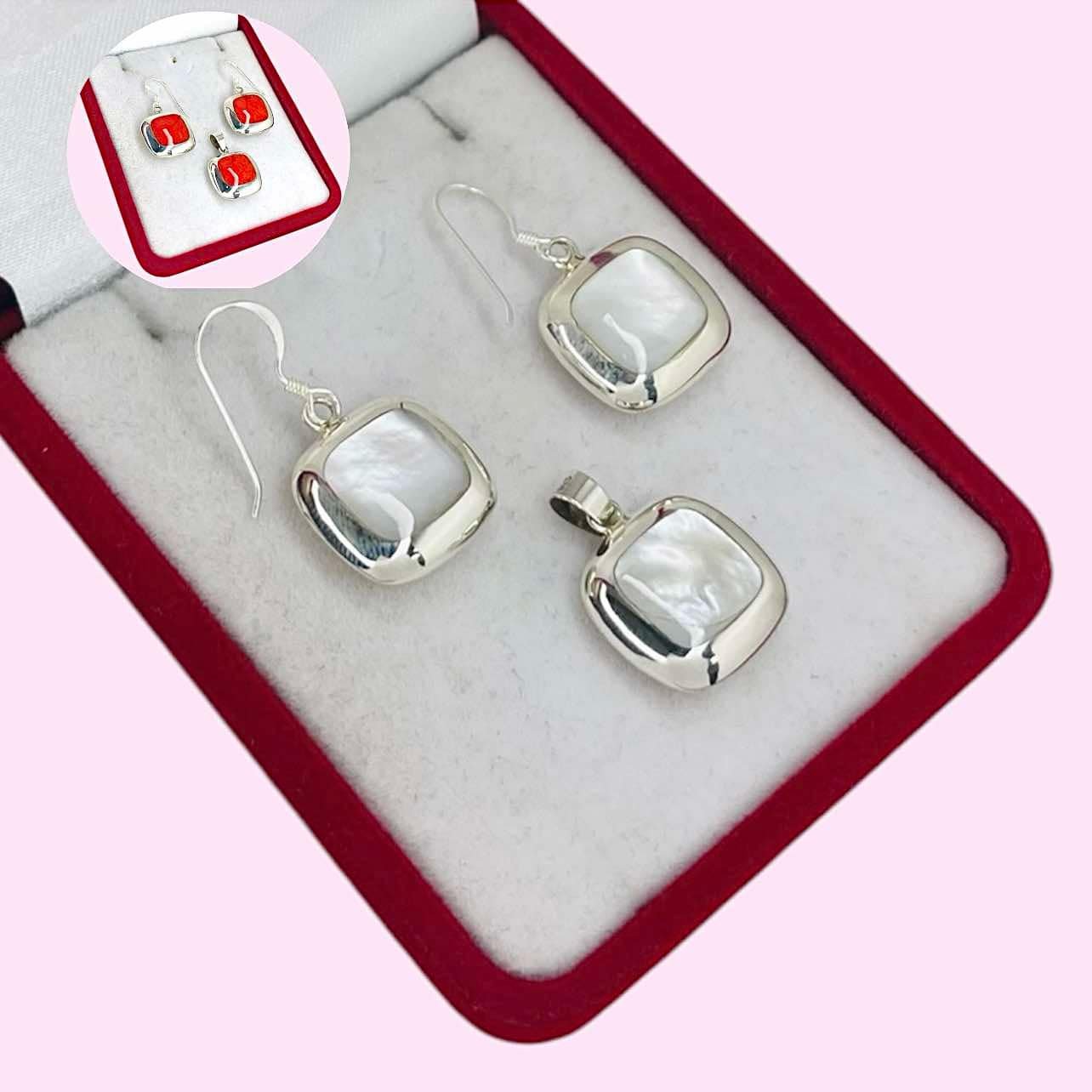 Artículo: KIT 015-3Conjunto Peruano Dije y aritos doble cara Rojo-Blanco