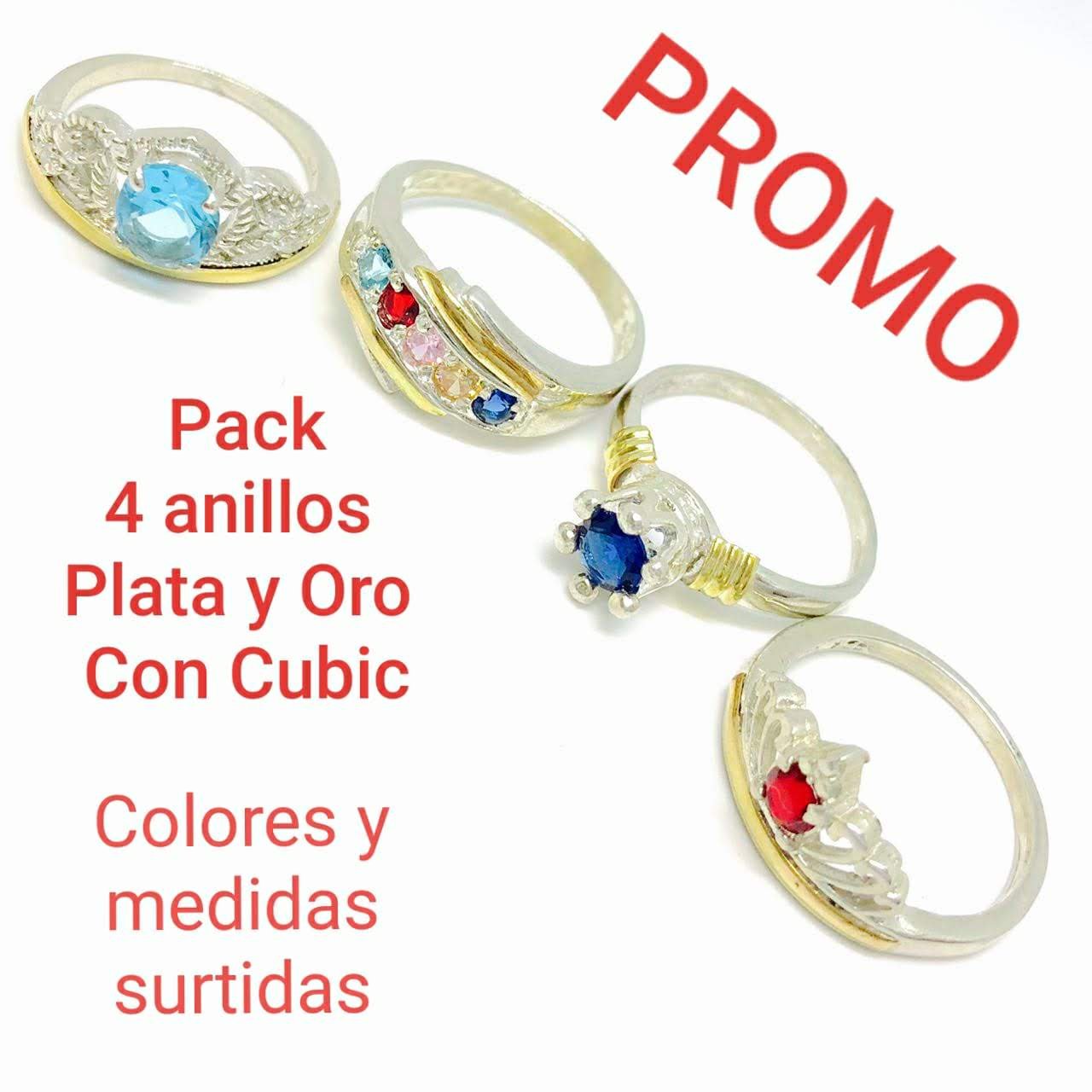 4 anillos de plata y oro con Cubic