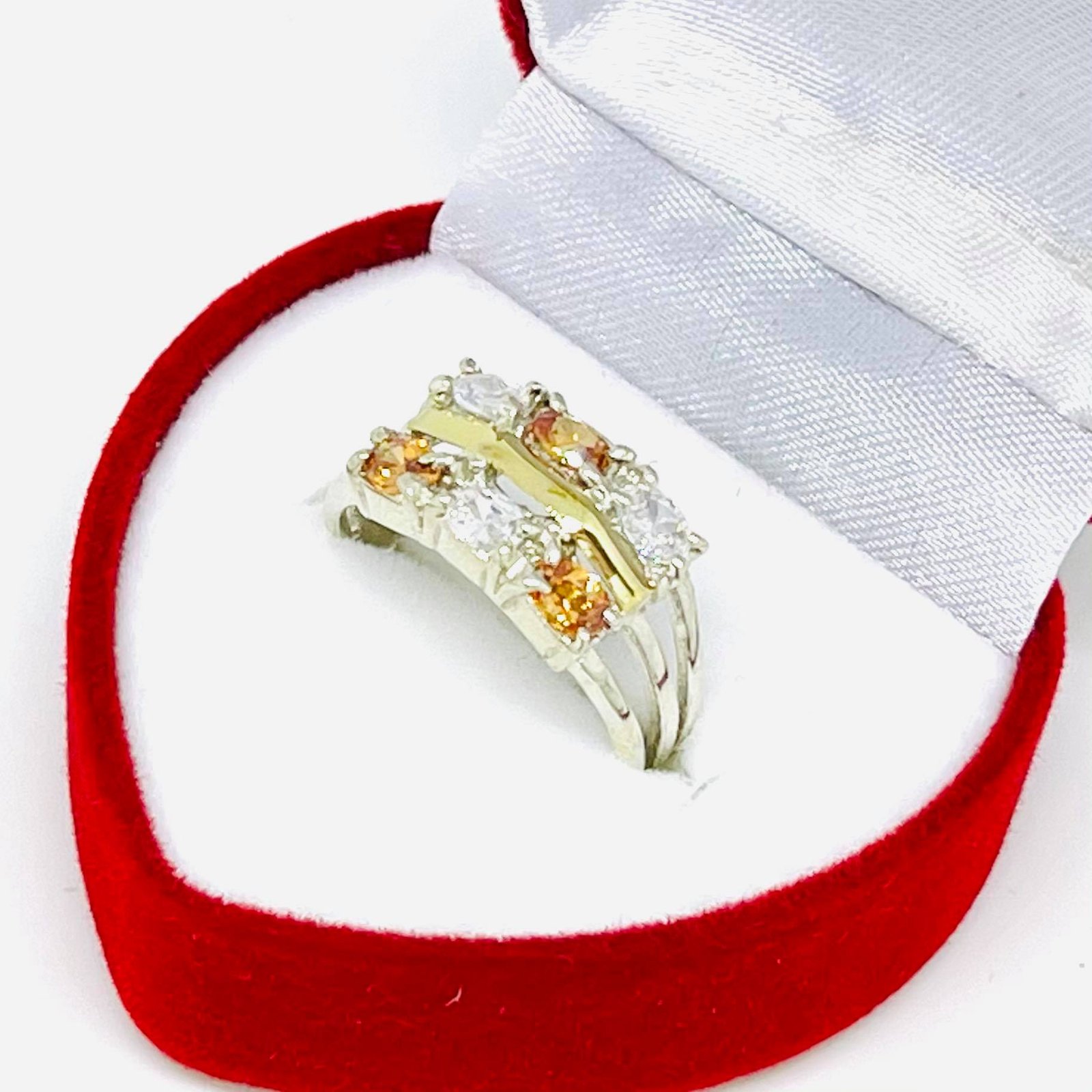 Anillo Nora con Piedras ambar-Blancas Plata y Oro