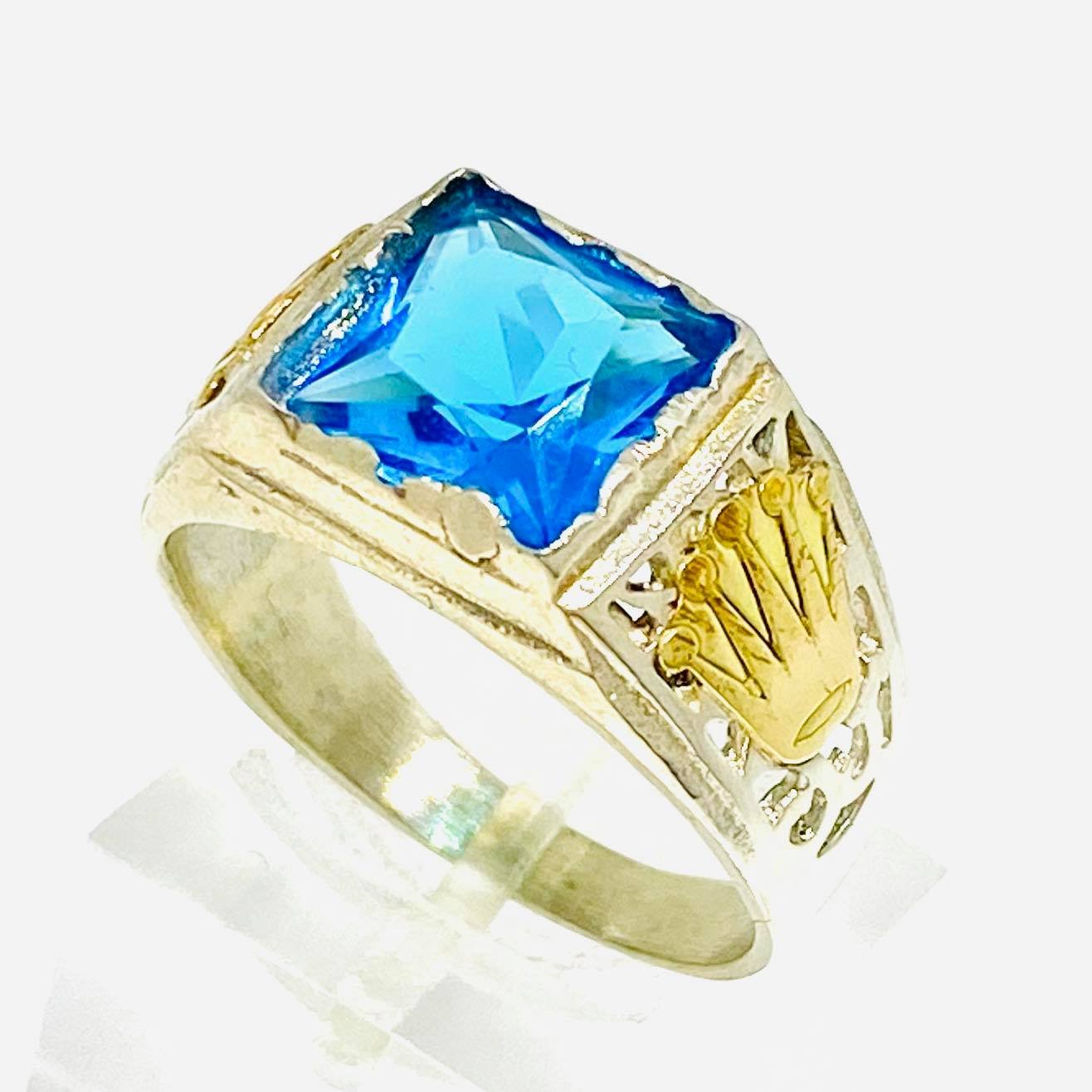 Anillo para Hombre con Corona piedra agua Plata y Oro