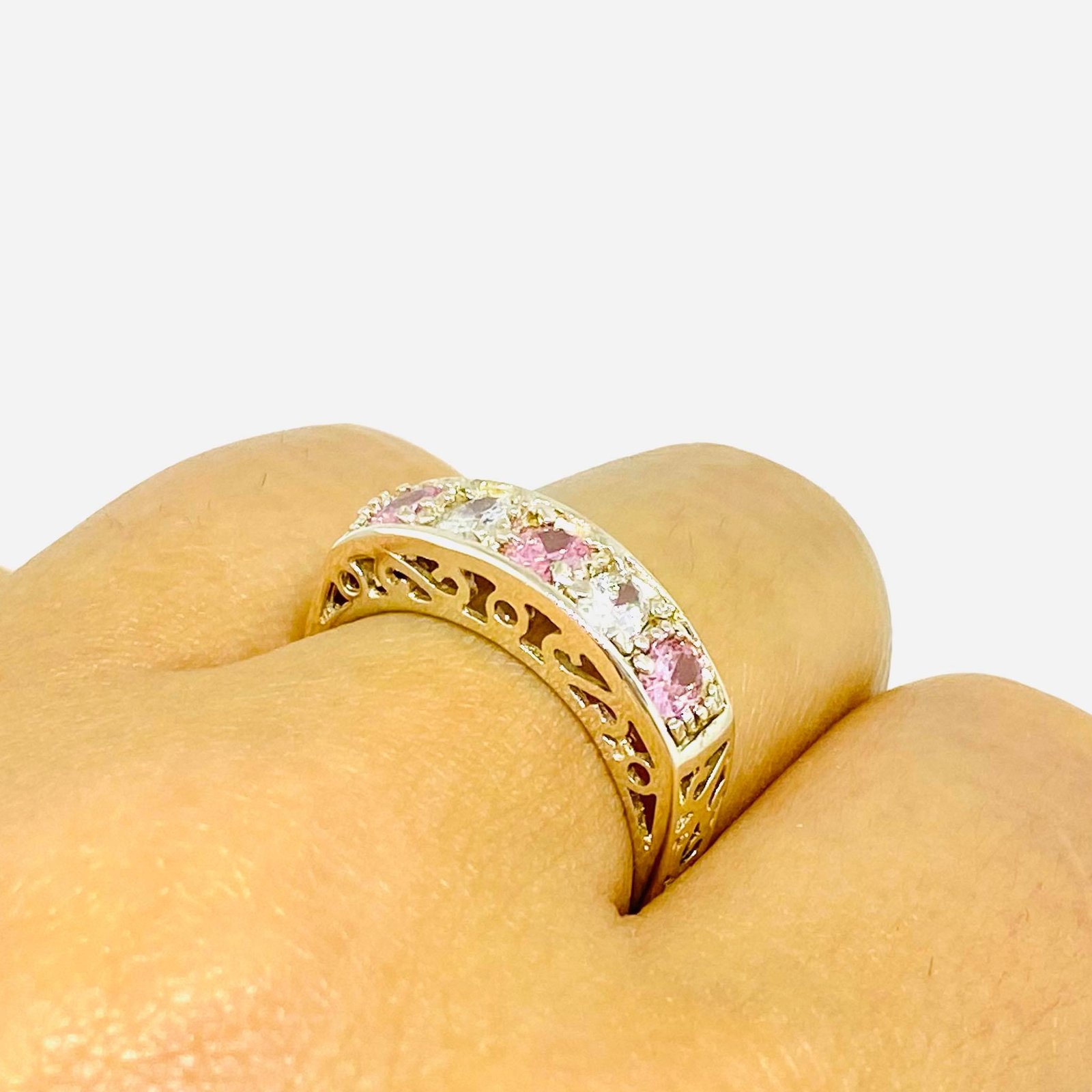 Anillo Magda medio sinfin Calado Rosa-blanco Plata 925