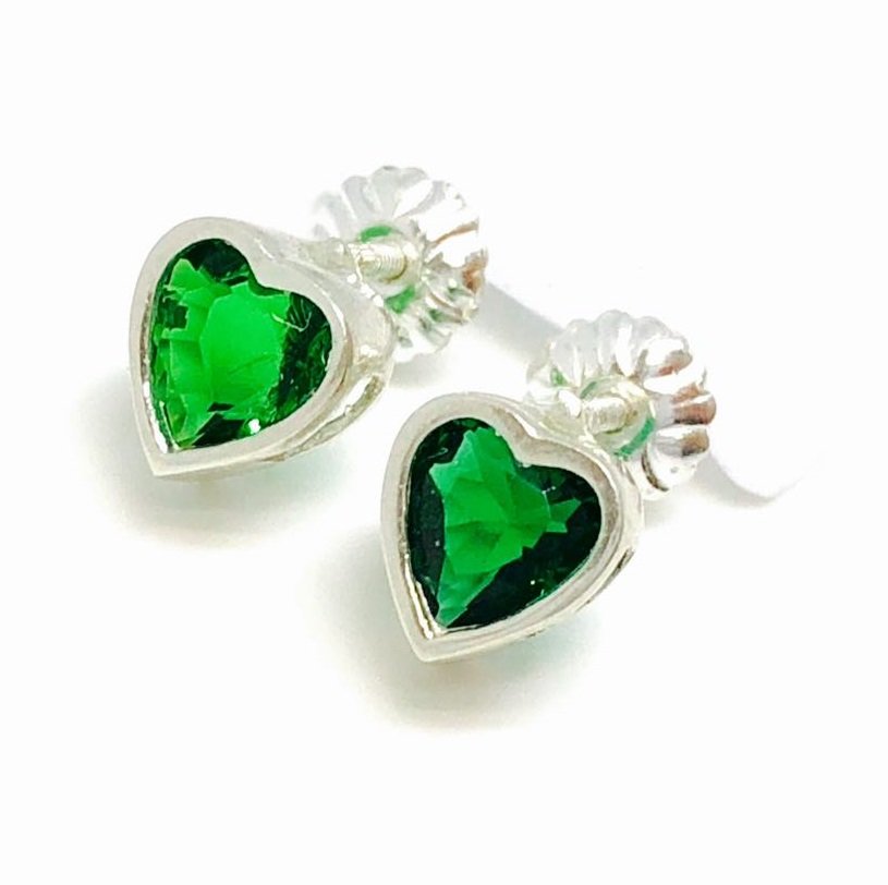 Aros Rosca con cubic de corazon 6mm esmeralda Plata 925