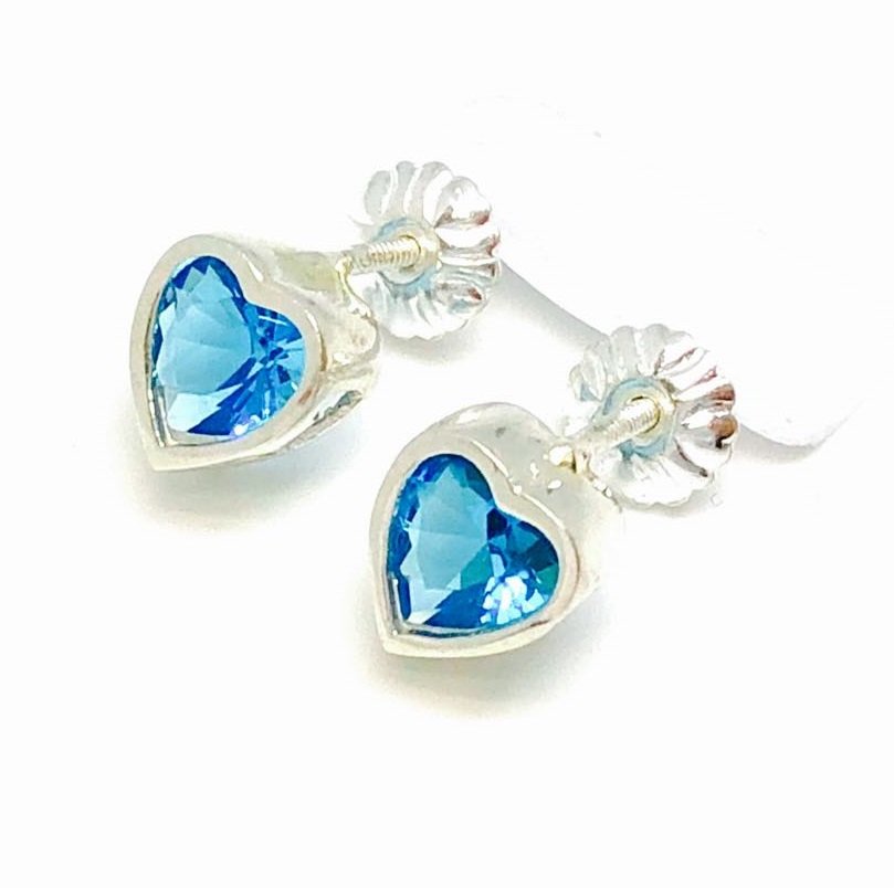 Aros Rosca con cubic de corazon agua 6mm marina Plata 925