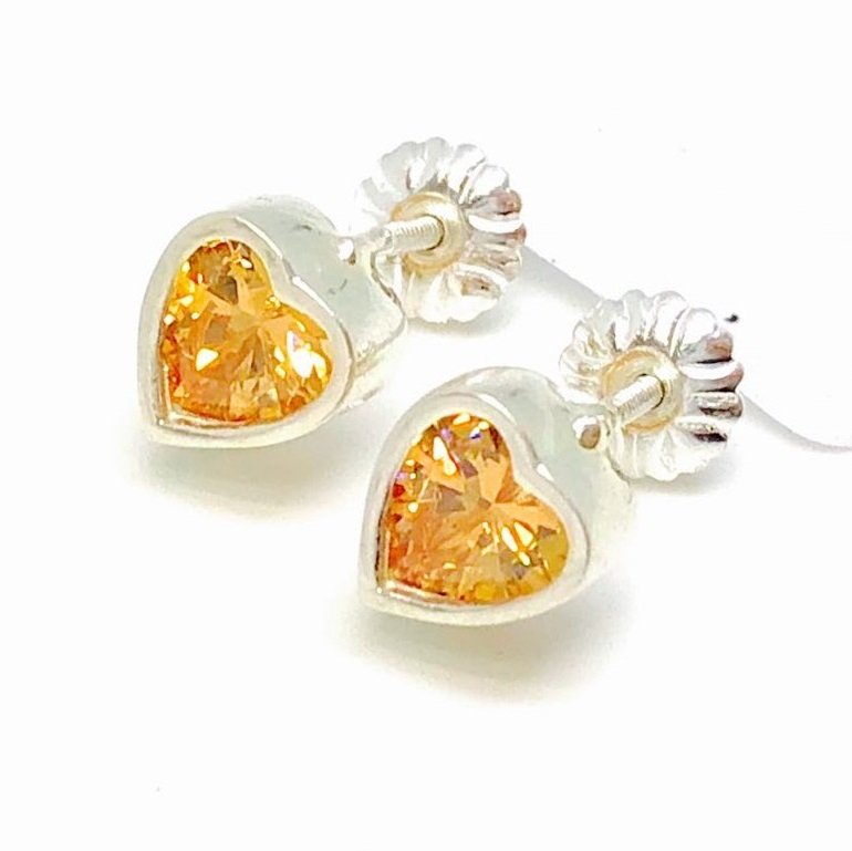 Aros Rosca con cubic de corazon 6mm ambar Plata 925