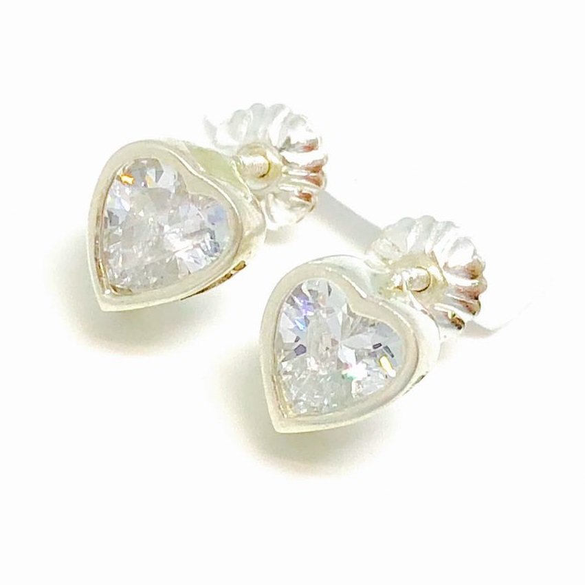 Aros con cubic de corazon 6mm Blanco Plata 925