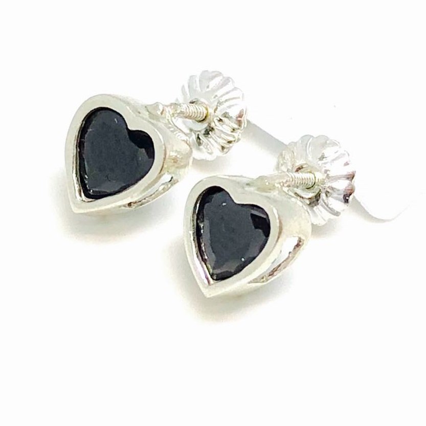 Aros Rosca con cubic de corazon 6mm negro Plata 925