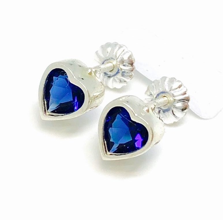 Aros Rosca con cubic de corazon 6mm zafiro Plata 925