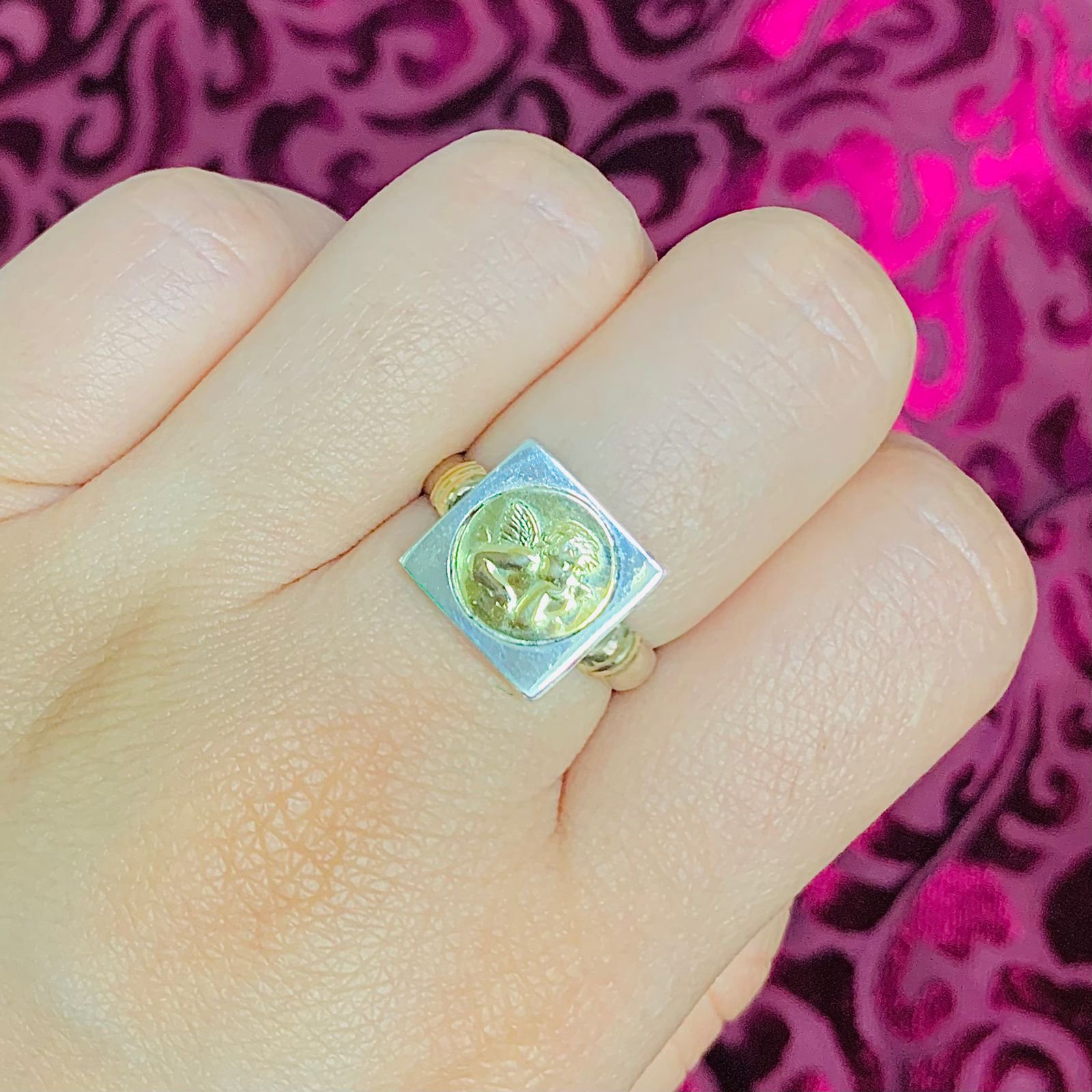Anillo angel de la guarda cuadrado de Plata y Oro