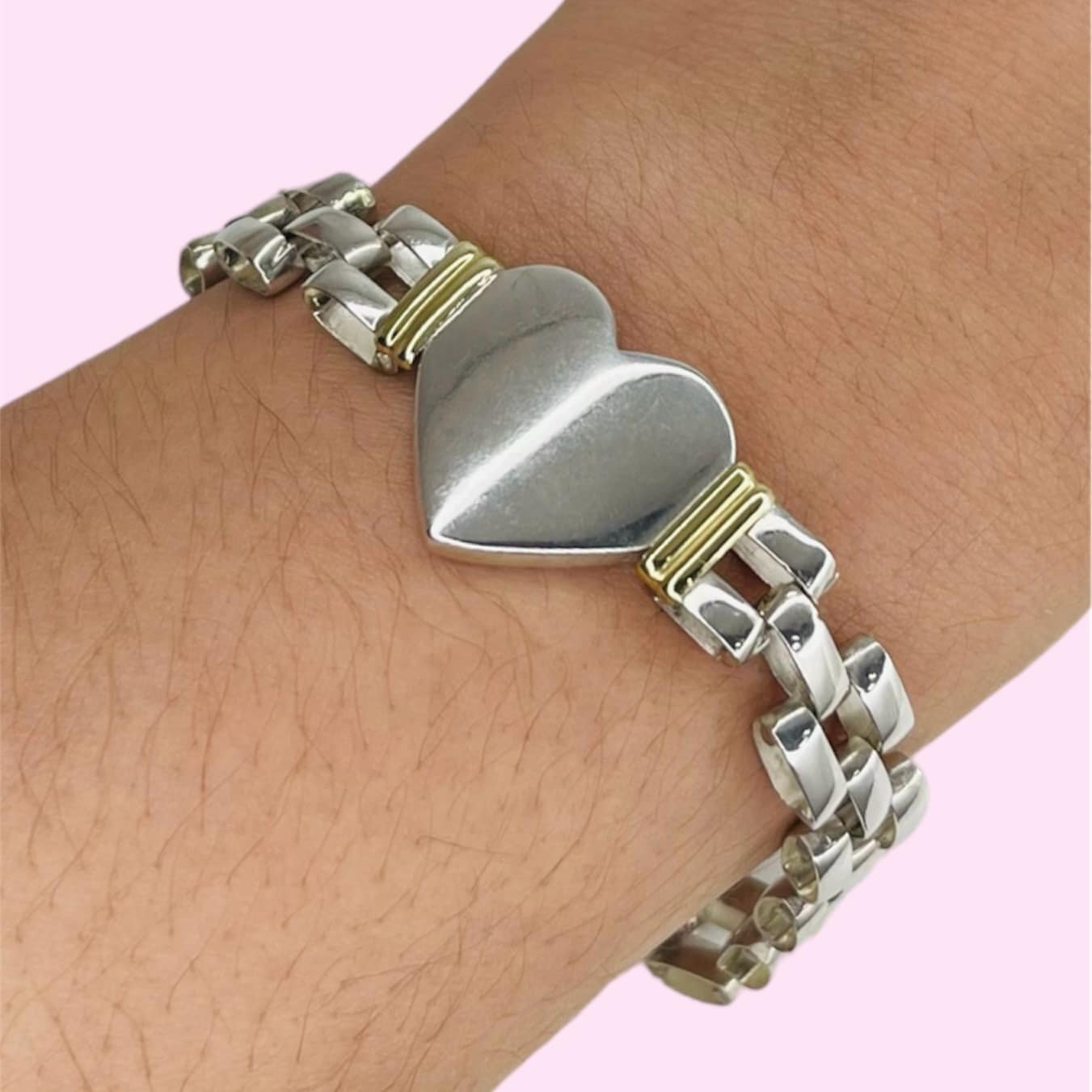 Pulsera Panter con Corazon Plata y Oro