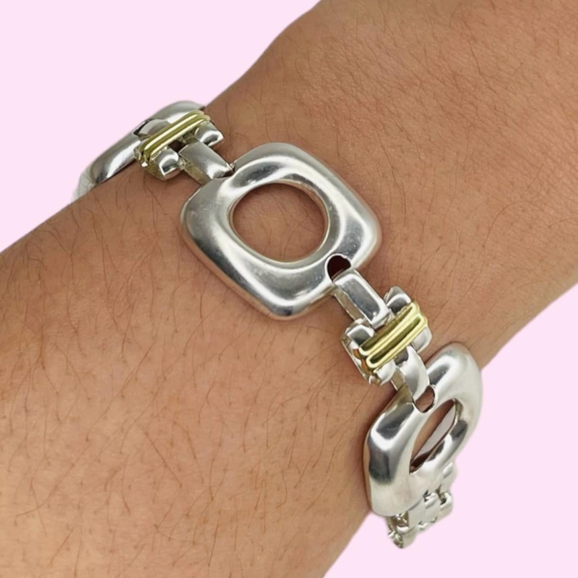 Pulsera Panter con 3 Cuadrados huecos Plata y Oro