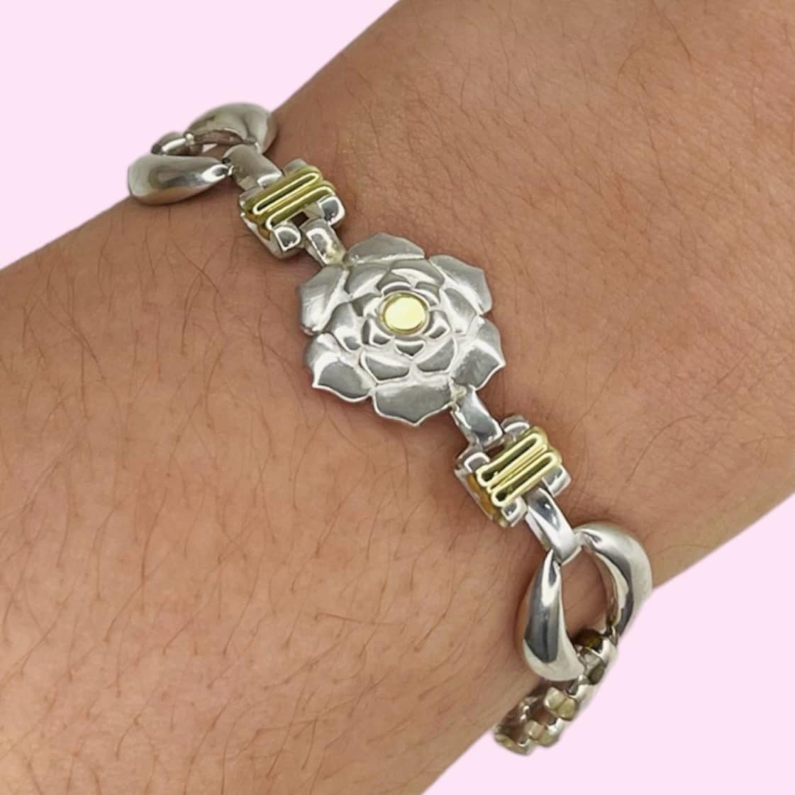 Pulsera Panter fina con dije Rosa y gucci Plata y Oro