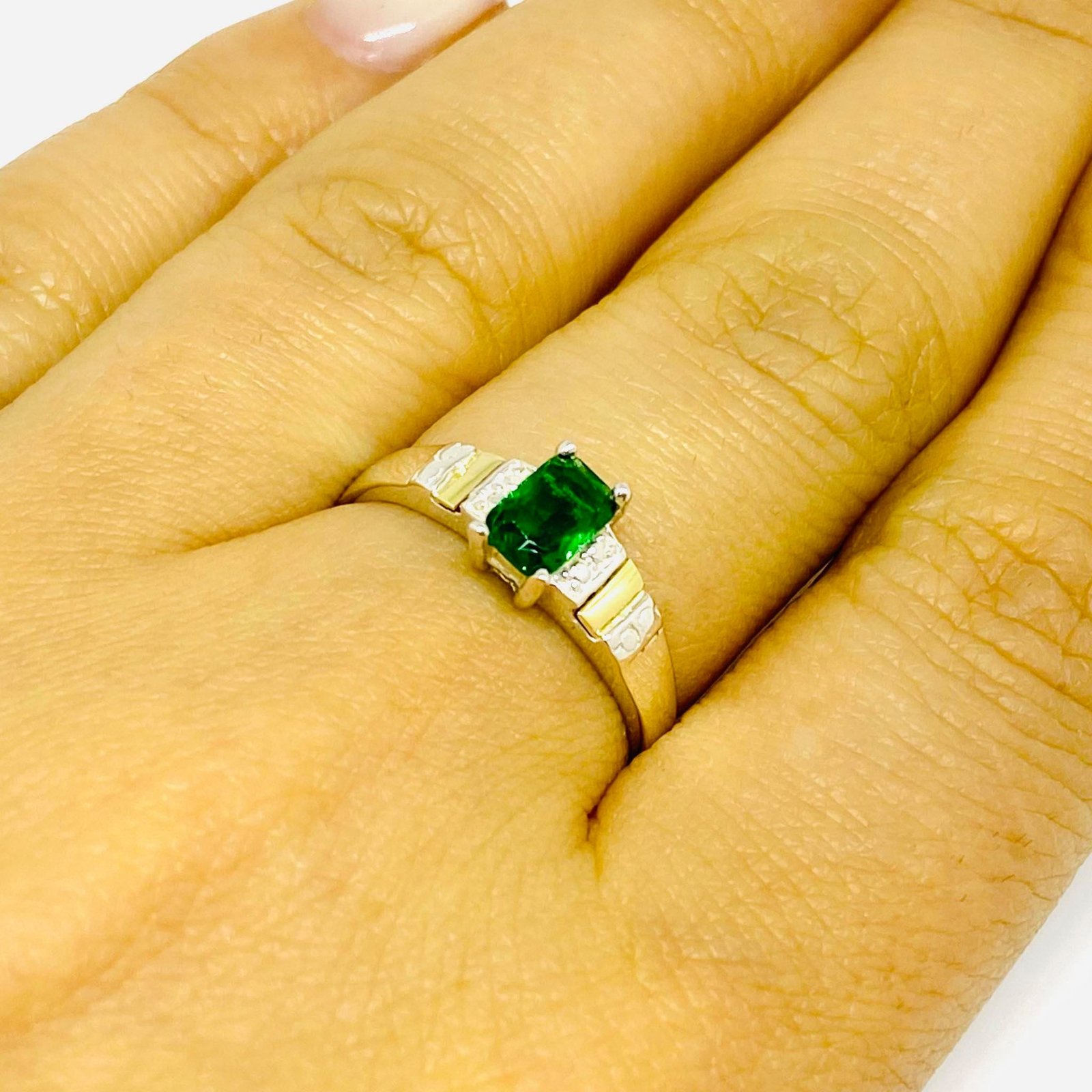 Anillo Solitario con cubic esmeralda Plata y Oro
