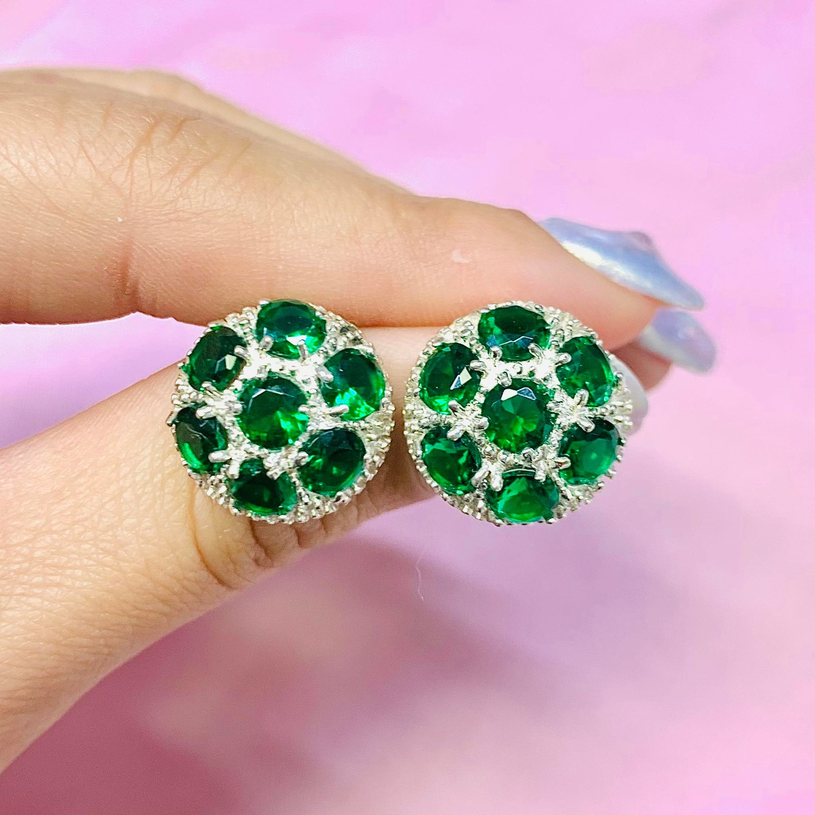 Aros Frutillon Rosca con cubic Esmeralda