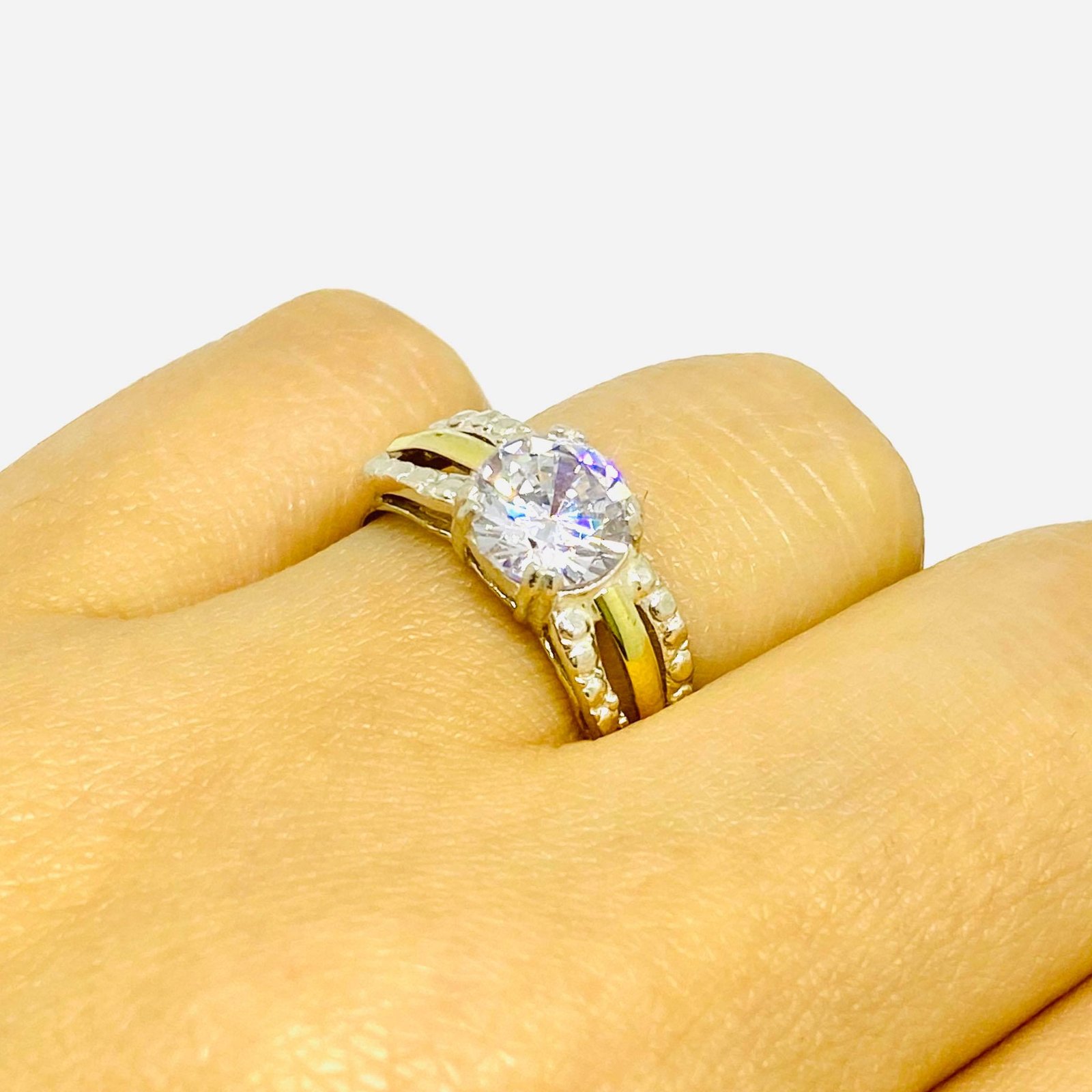 Anillo Alexia con cubic 7mm blanco Plata y Oro