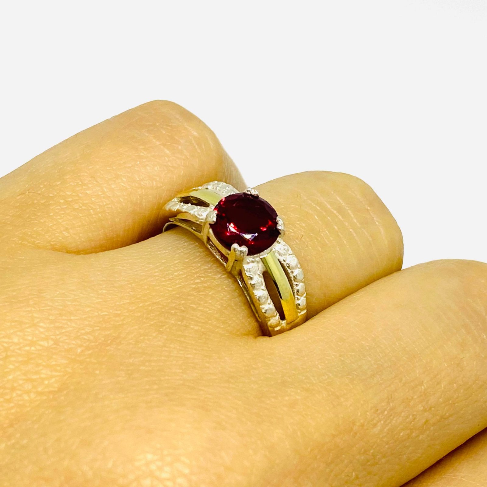Anillo Alexia con cubic 7mm rubi Plata y Oro