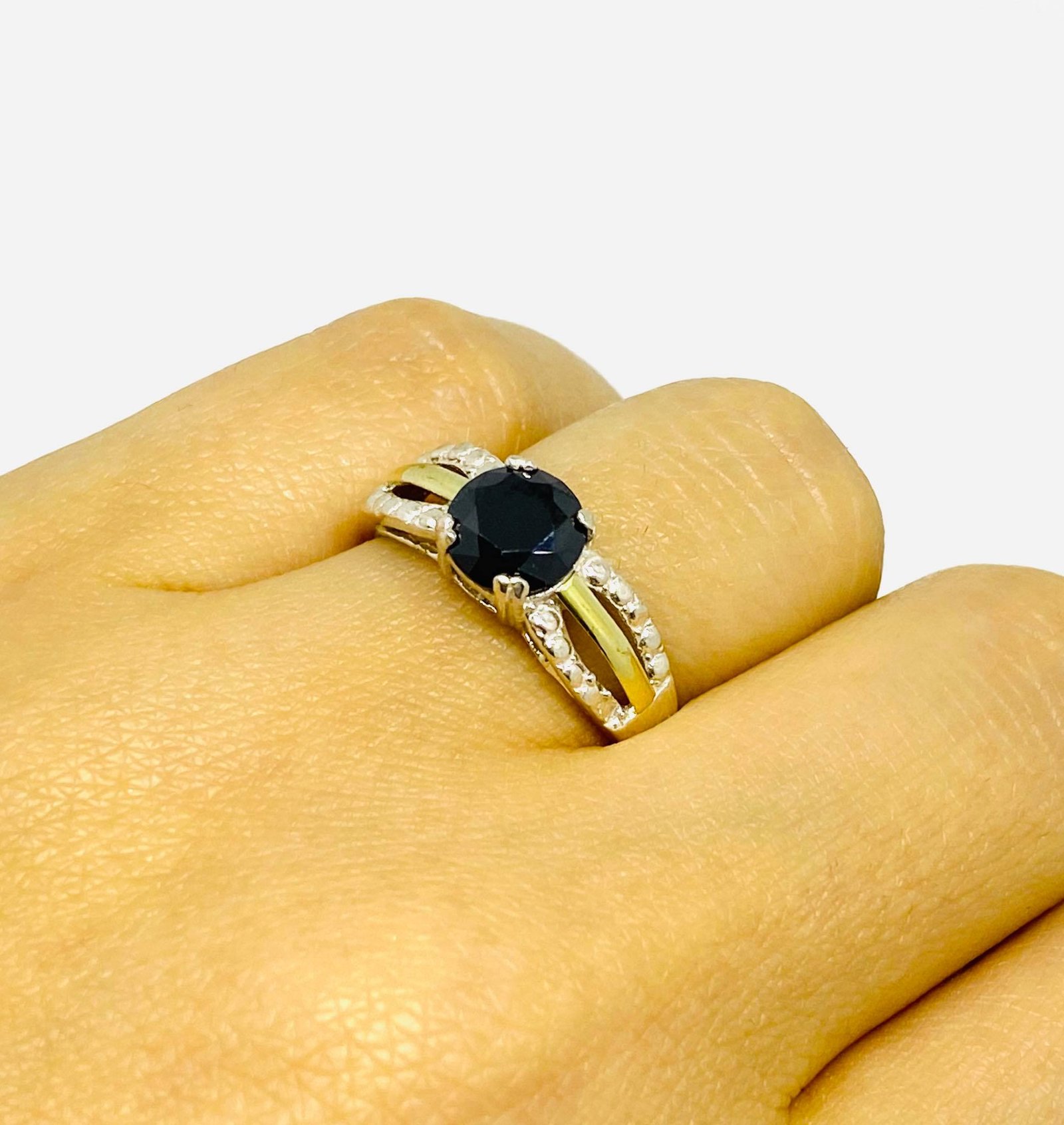 Anillo Alexia con cubic 7mm negro Plata y Oro