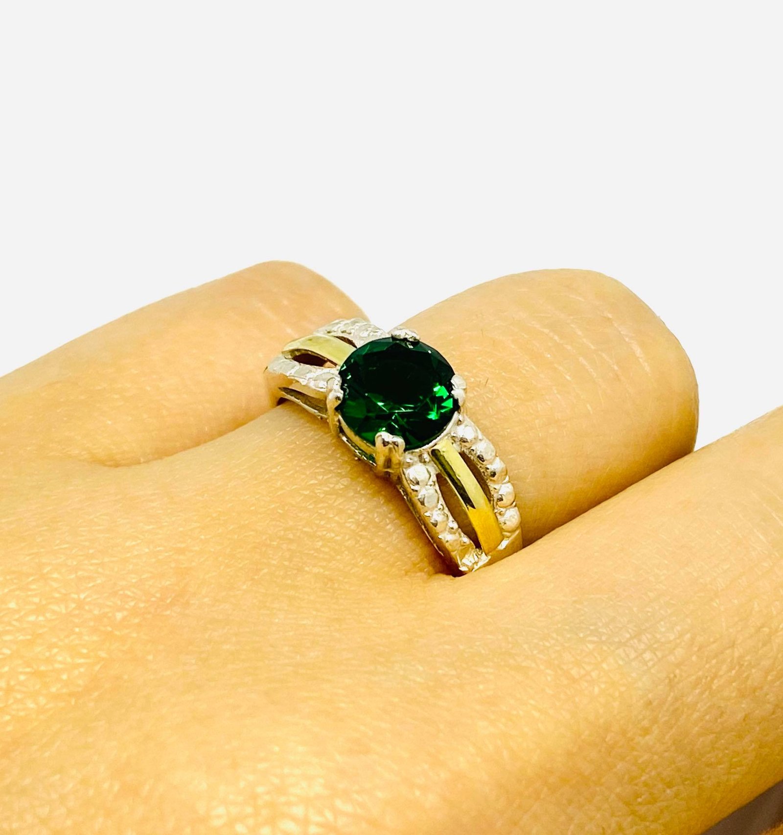Anillo Alexia con cubic 7mm esmeralda Plata y Oro
