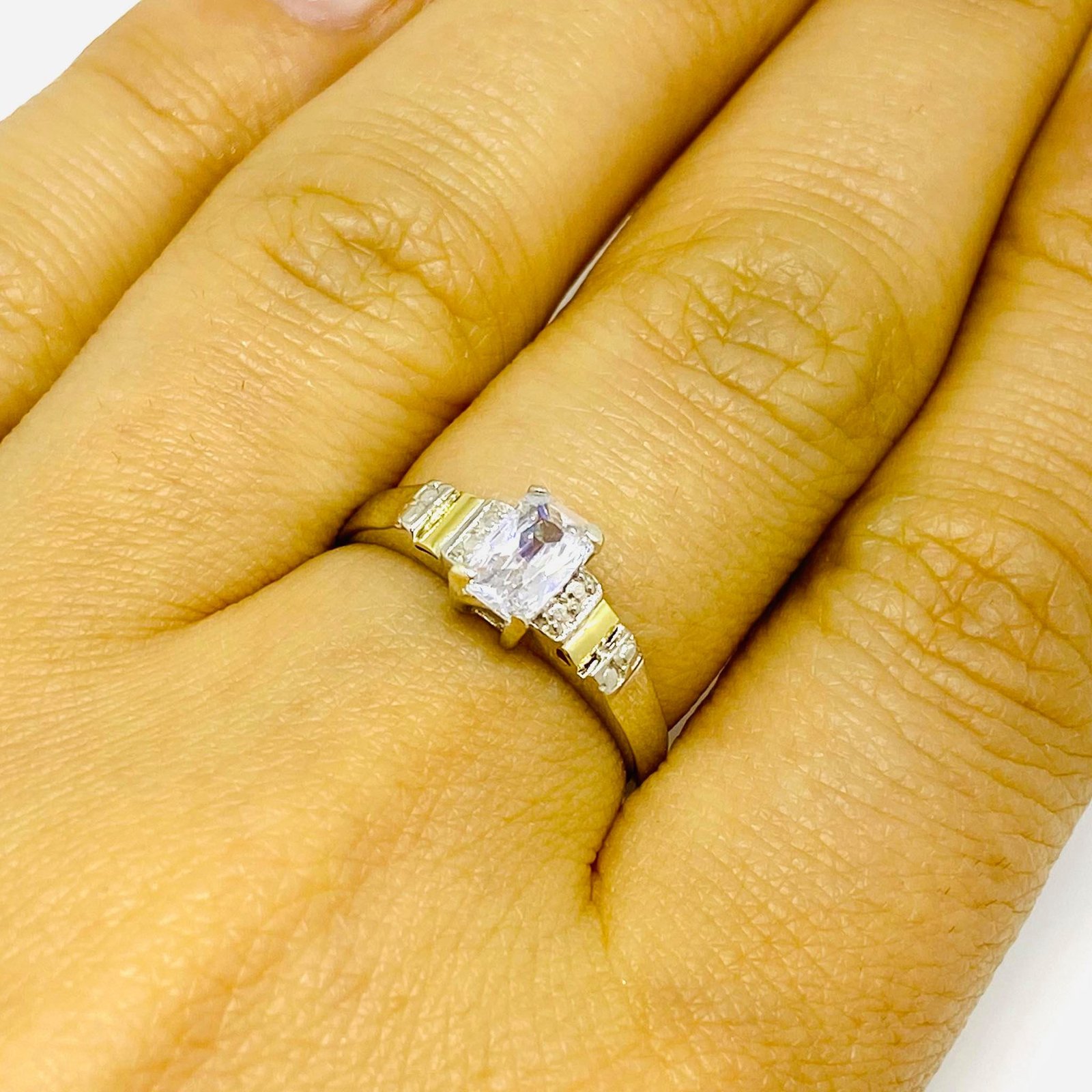 Anillo Solitario con cubic blanco Plata y Oro
