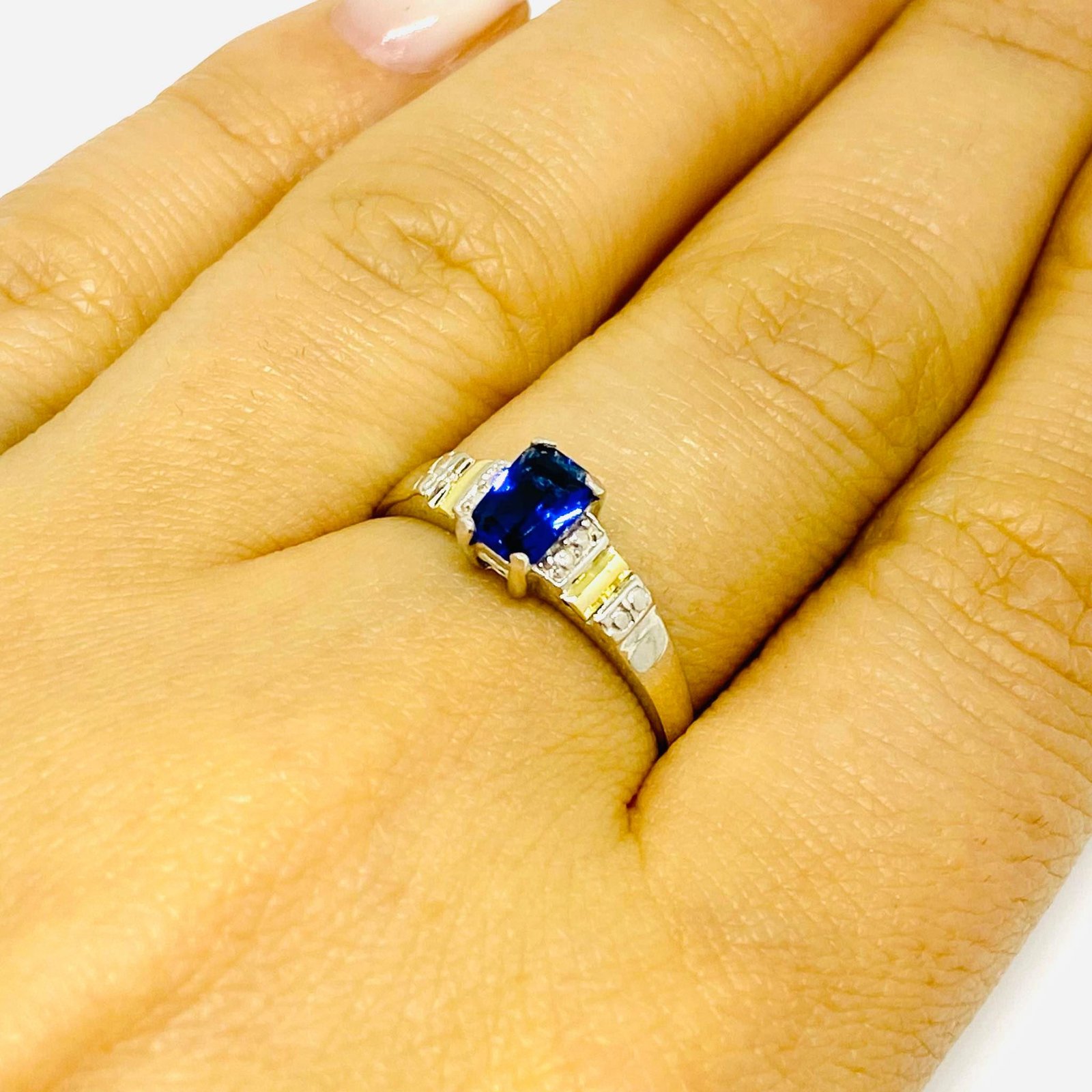 Anillo Solitario con cubic Zafiro Plata y Oro