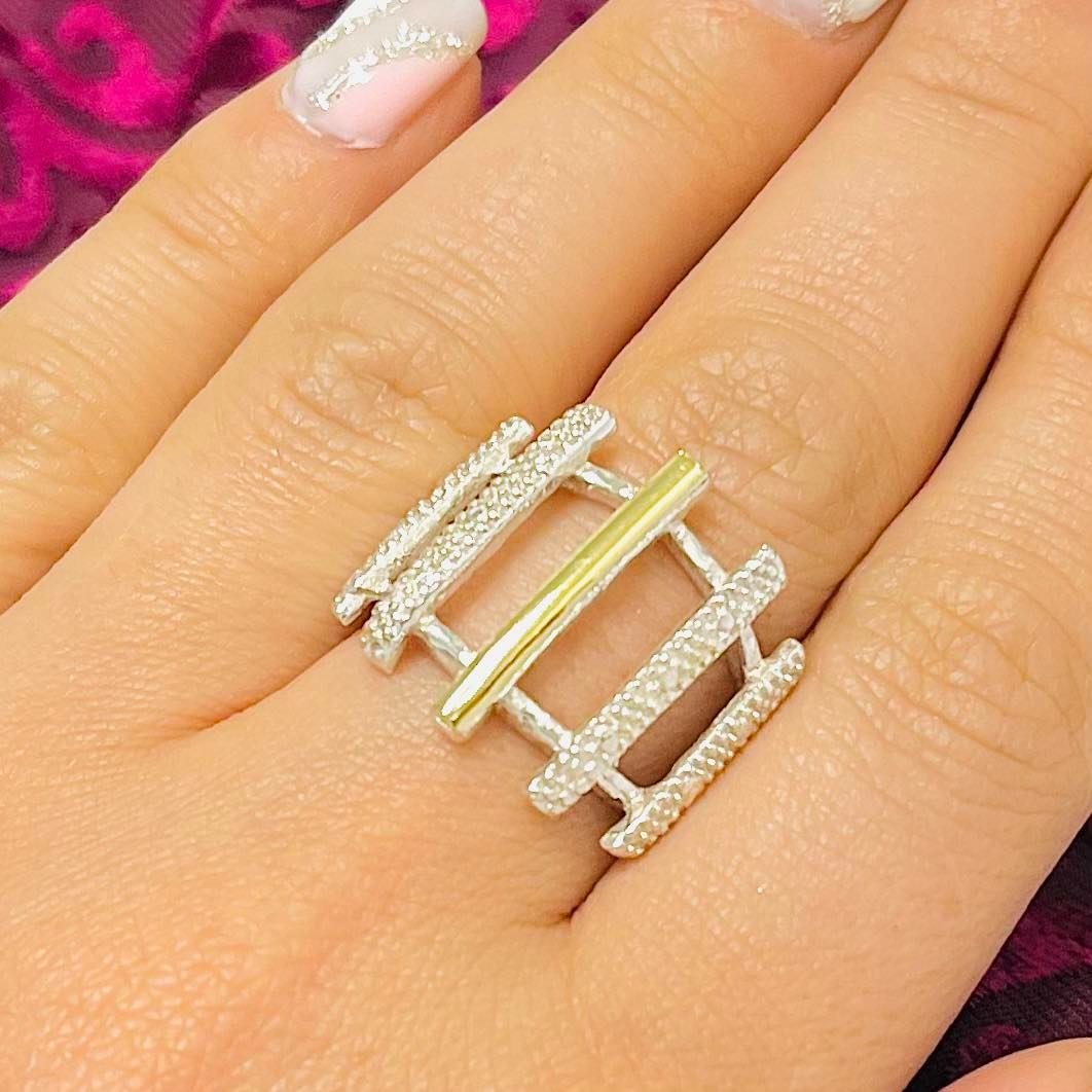 Anillo de Plata y Oro Reja