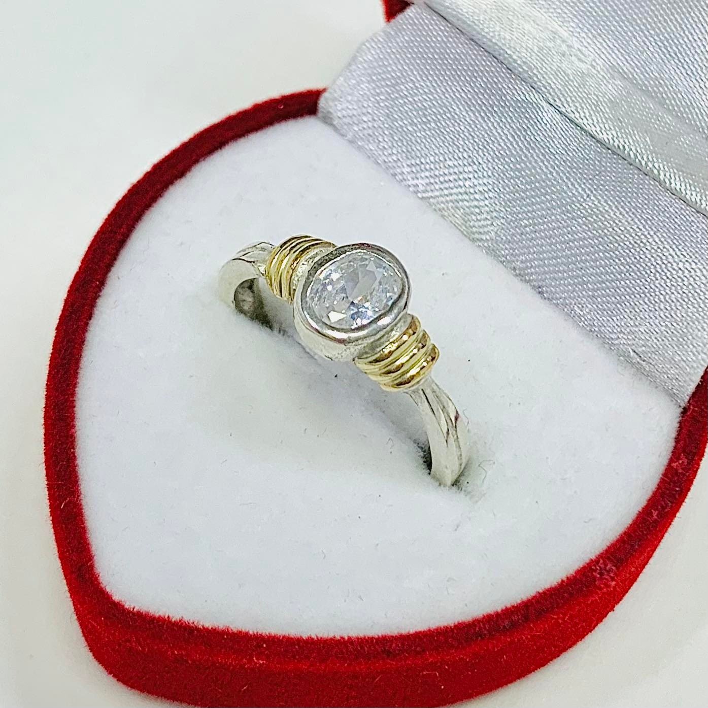 Anillo solitario Erika con piedra Blanca Plata y Oro