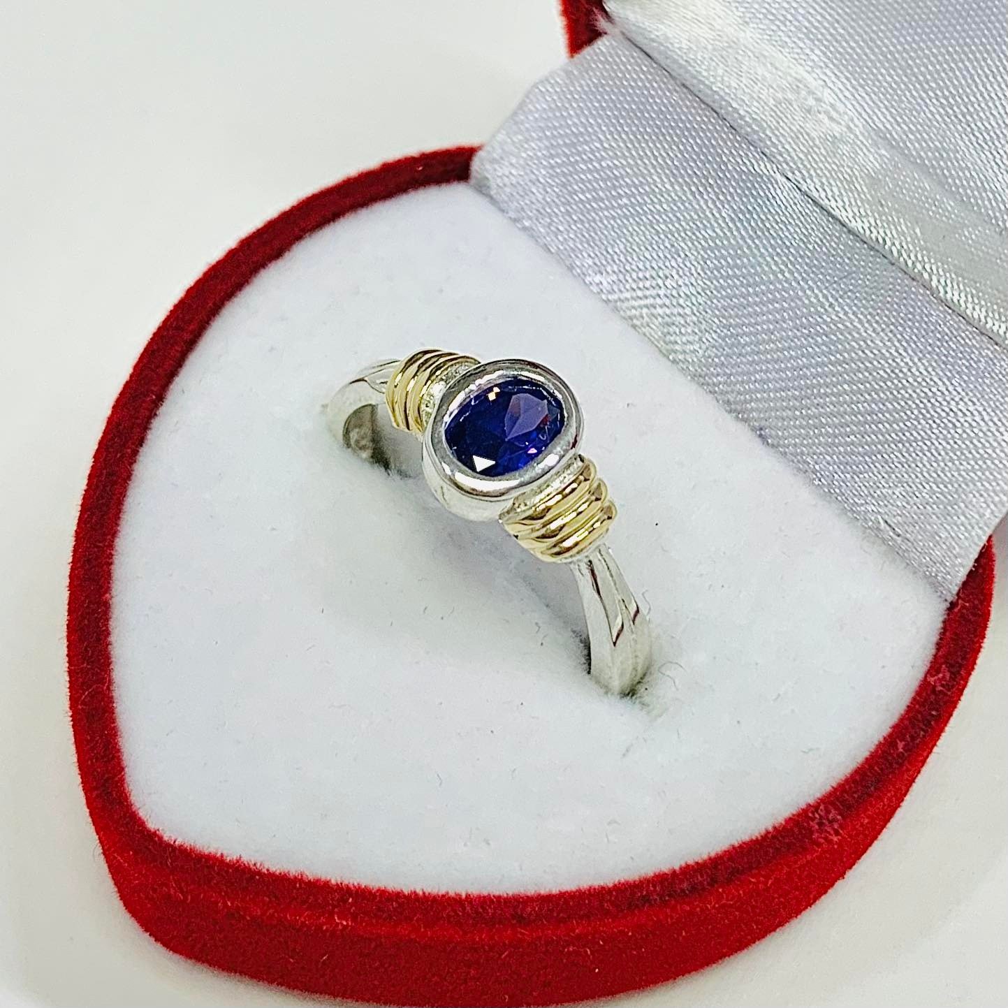Anillo solitario Erika con piedra amatista Plata y Oro