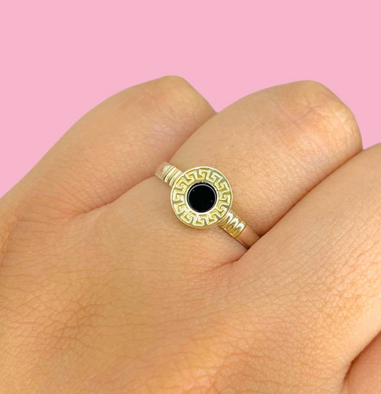 Anillo Guarda Griega Chico con Onix Plata y Oro
