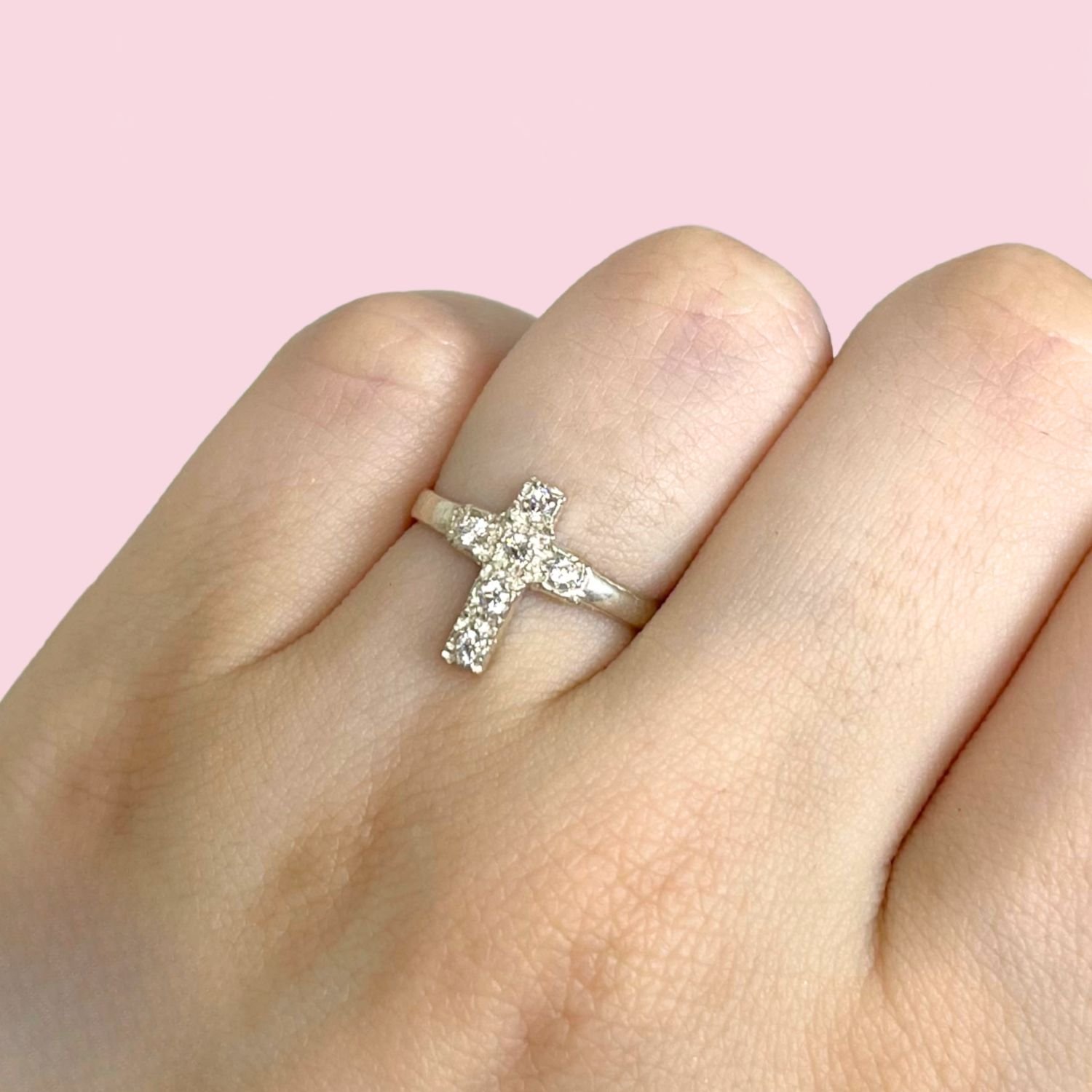 » Anillo Cruz Con cubic Blanco Plata 925