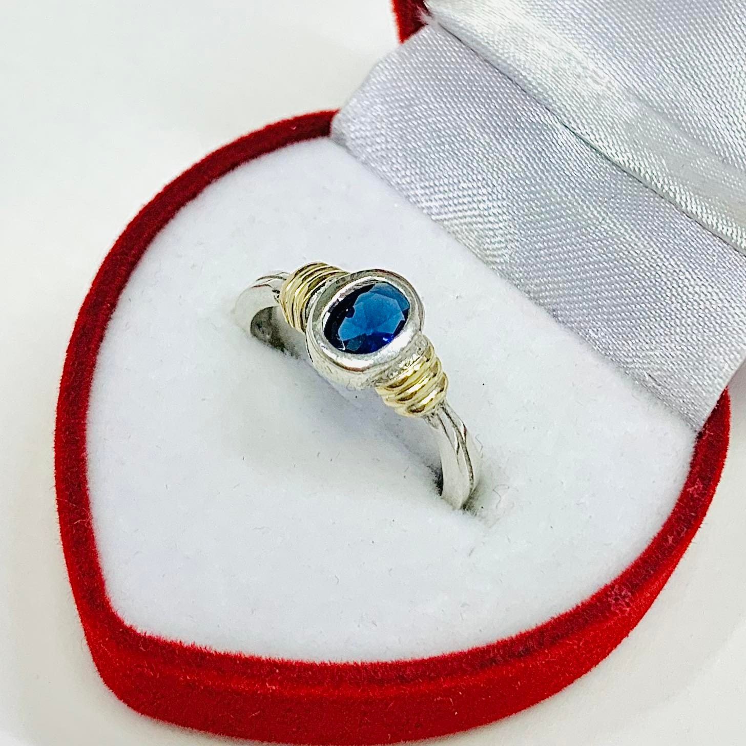 Anillo solitario Erika con piedra zafiro Plata y Oro