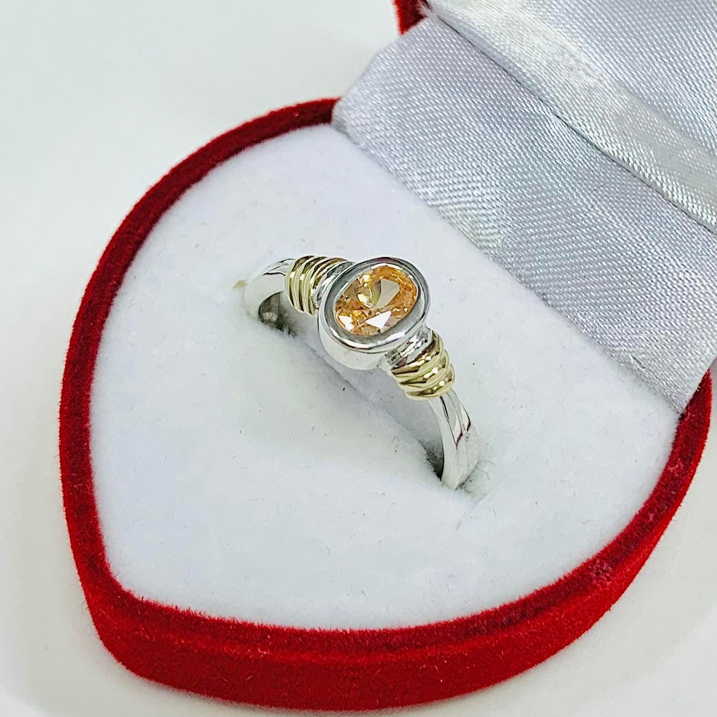 Anillo solitario Erika con piedra ambar Plata y Oro