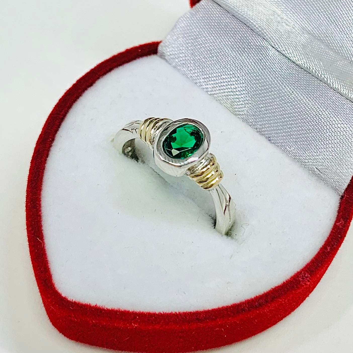 Anillo solitario Erika con piedra esmeralda Plata y Oro