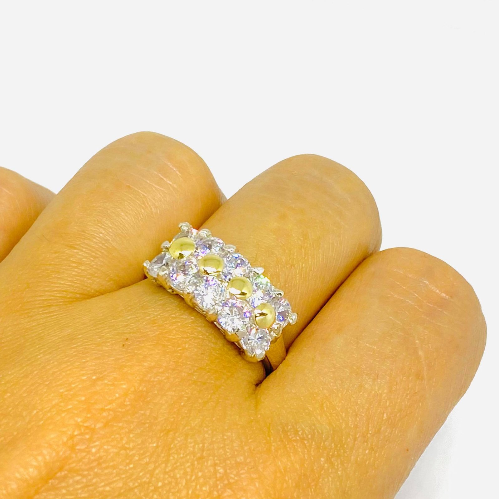 Anillo Analia lujoso con piedras Blancas Plata y Oro