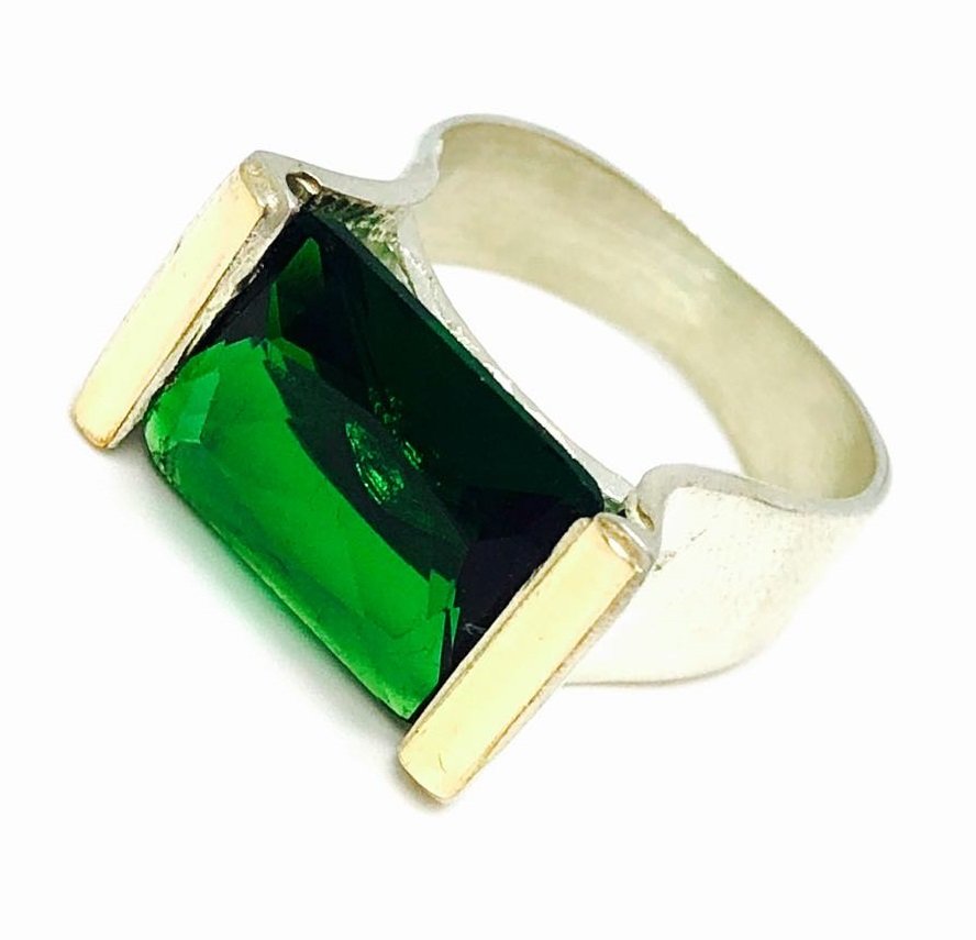 Anillo Importante esmeralda de Plata y Oro