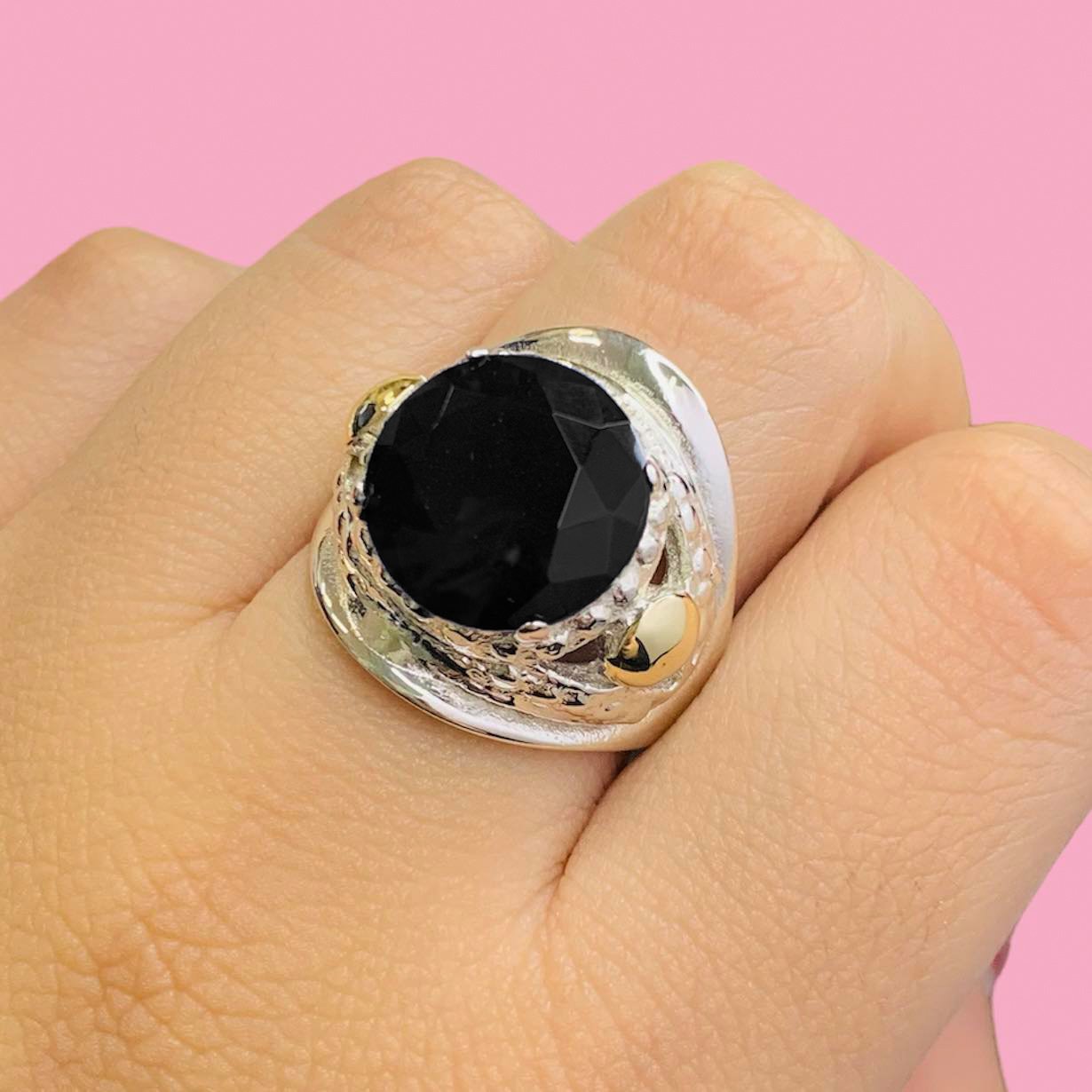 Anillo Importante con cubic Negro de 15mm de Plata y Oro