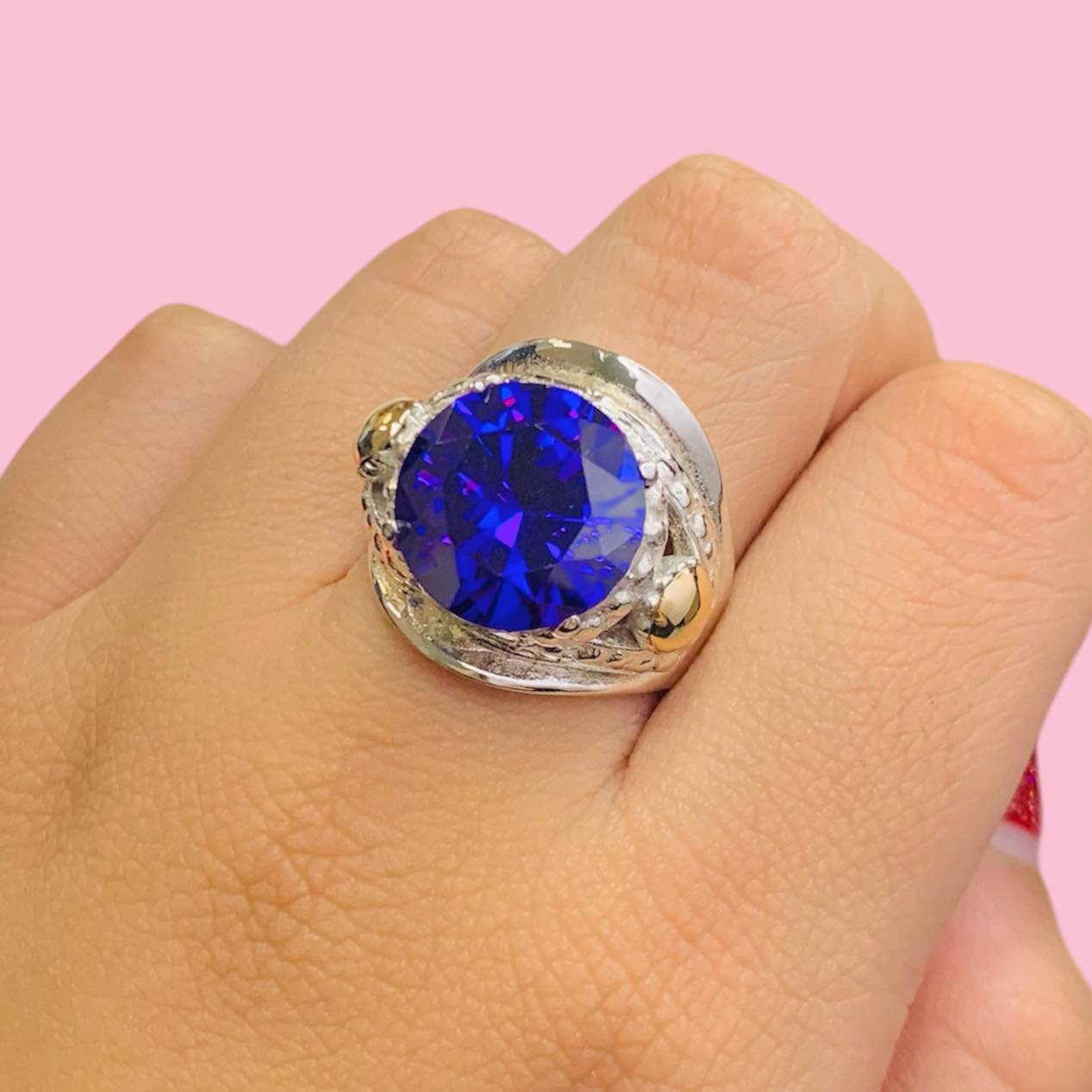 Anillo Importante con cubic amatista de 15mm de Plata y Oro