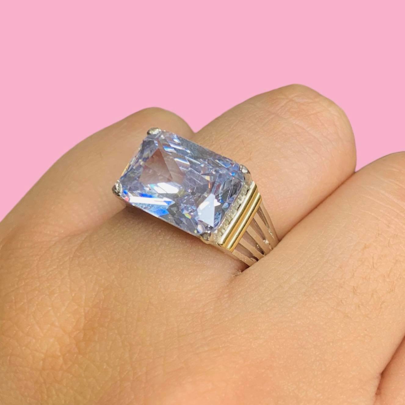 Anillo con piedra rectangular 14 x 10 para Hombre Plata y Oro