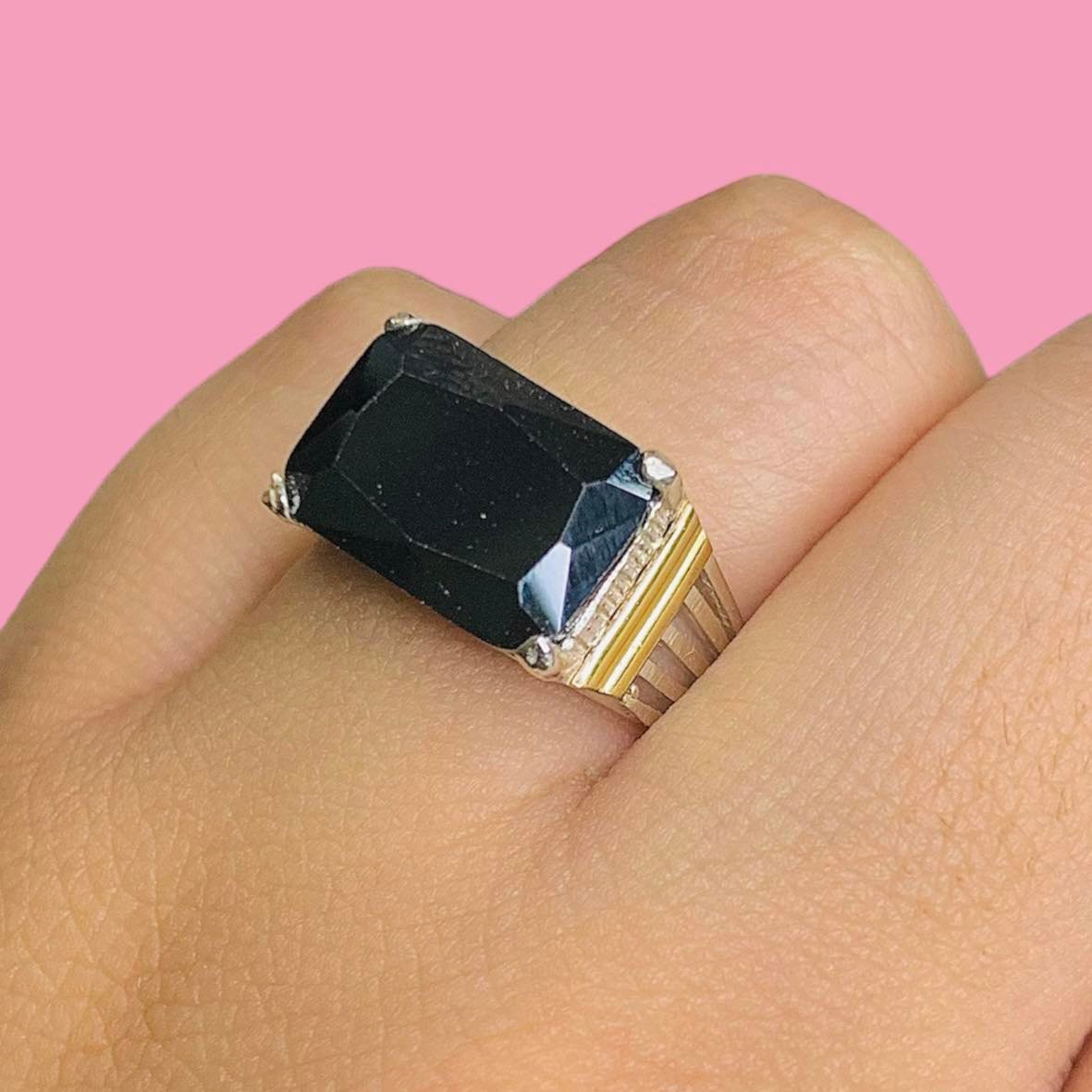 Anillo con piedra rectangular 14 x 10 para Hombre Plata y Oro