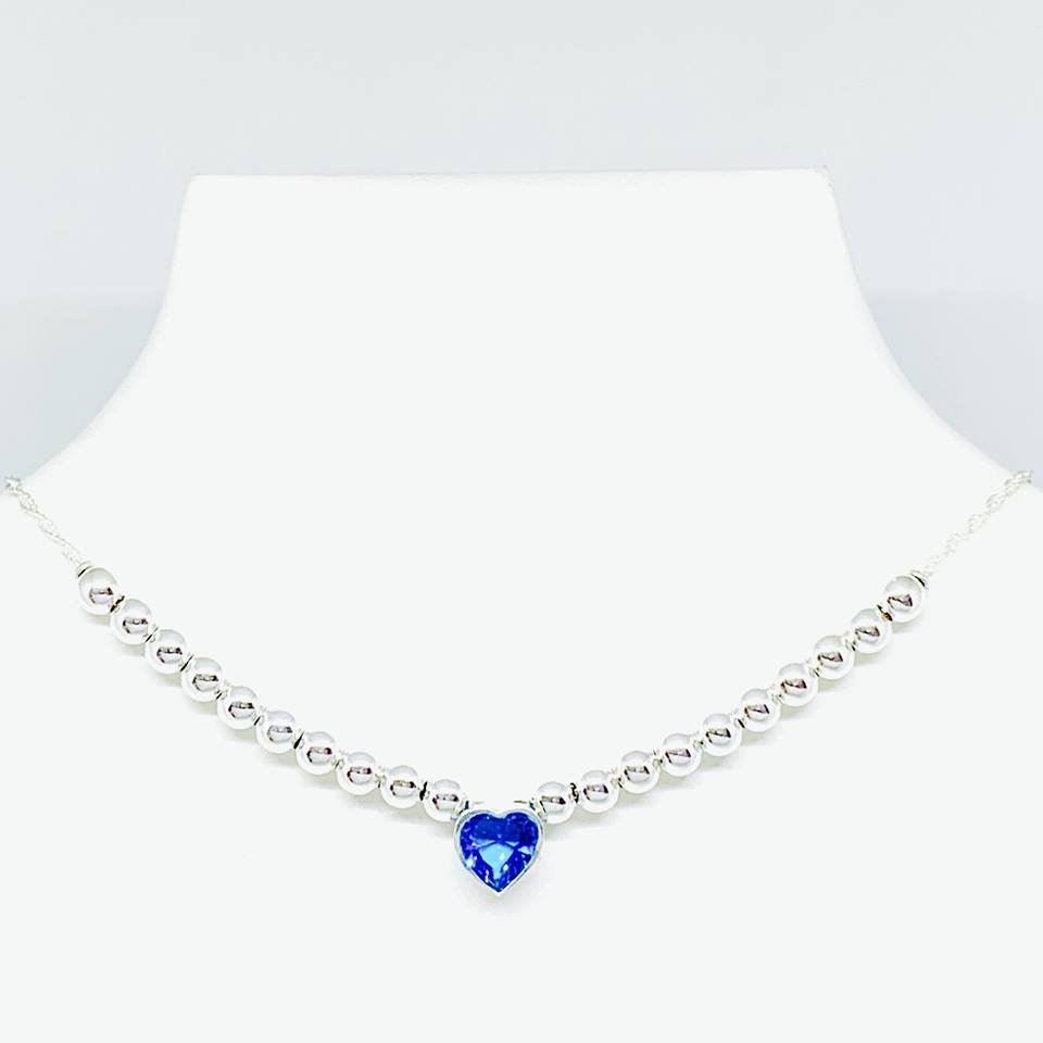 Choker con Bolitas de 5 mm y Corazon 10mm Aguamarina
