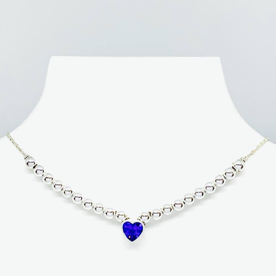 Choker con Bolitas de 5 mm y Corazon 10mm Amatista