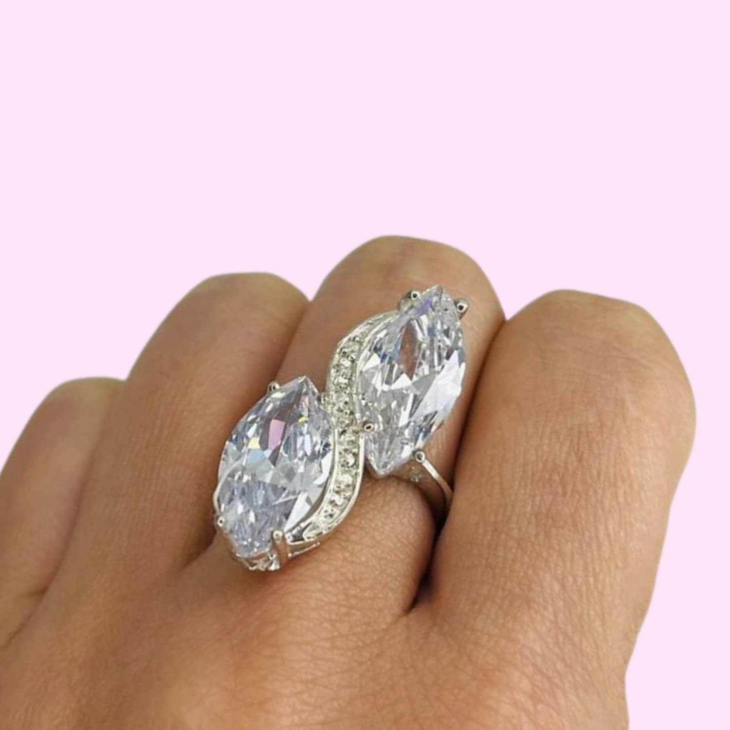 Anillo con Marquesita Grande 18mmx9mm Blanco