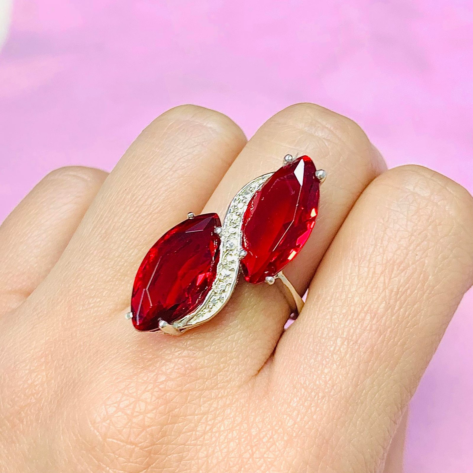 Anillo con Marquesita Grande 18mmx9mm Rubi