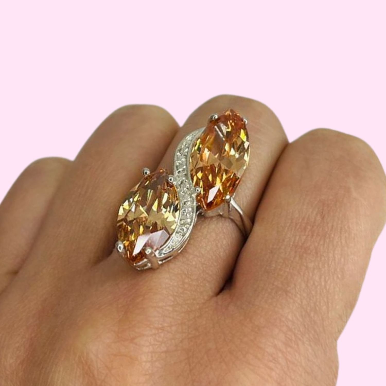 Anillo con Marquesita Grande 18mmx9mm Ambar