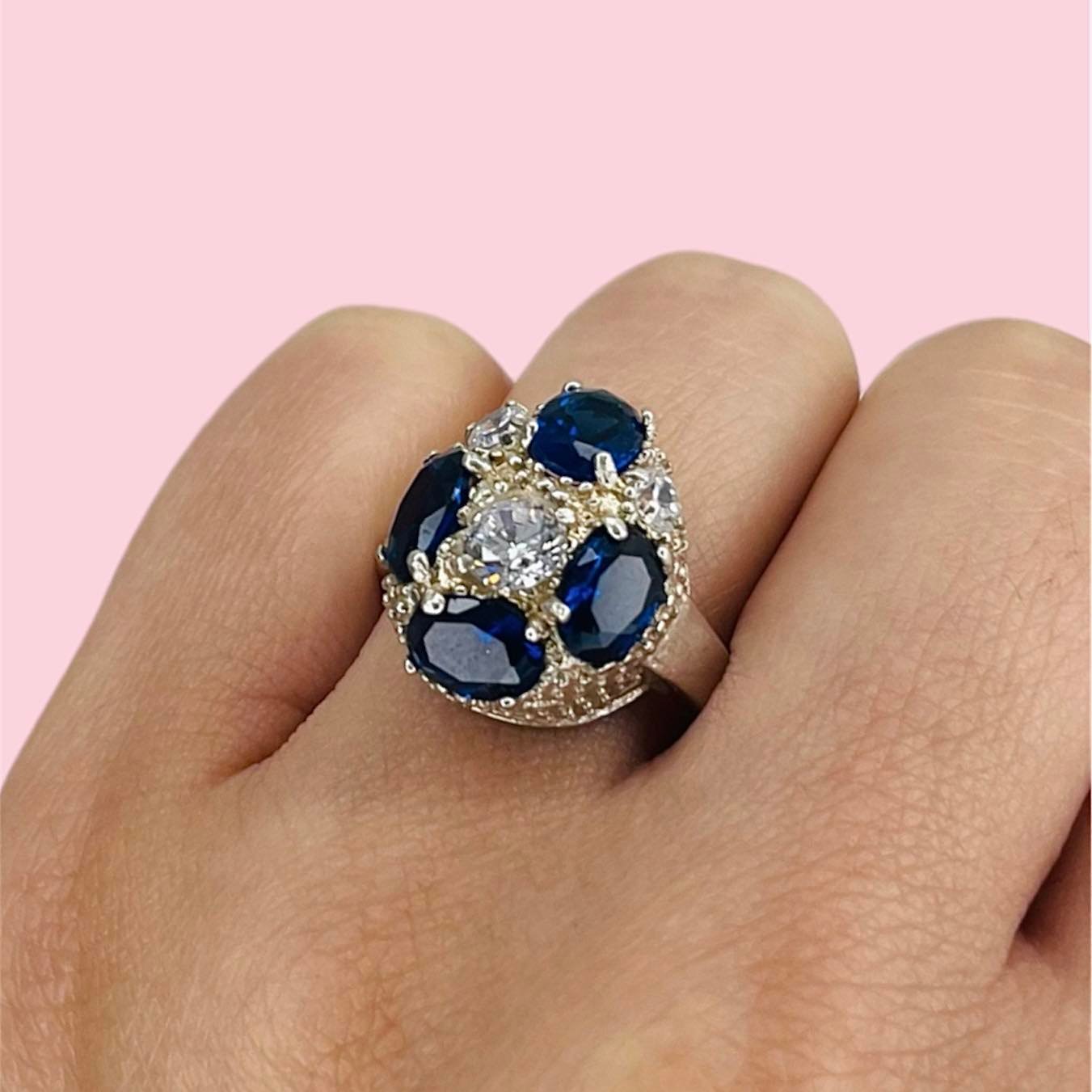 Anillo Frutillon Gota Combinado Zafiro-Blanco Plata y Oro