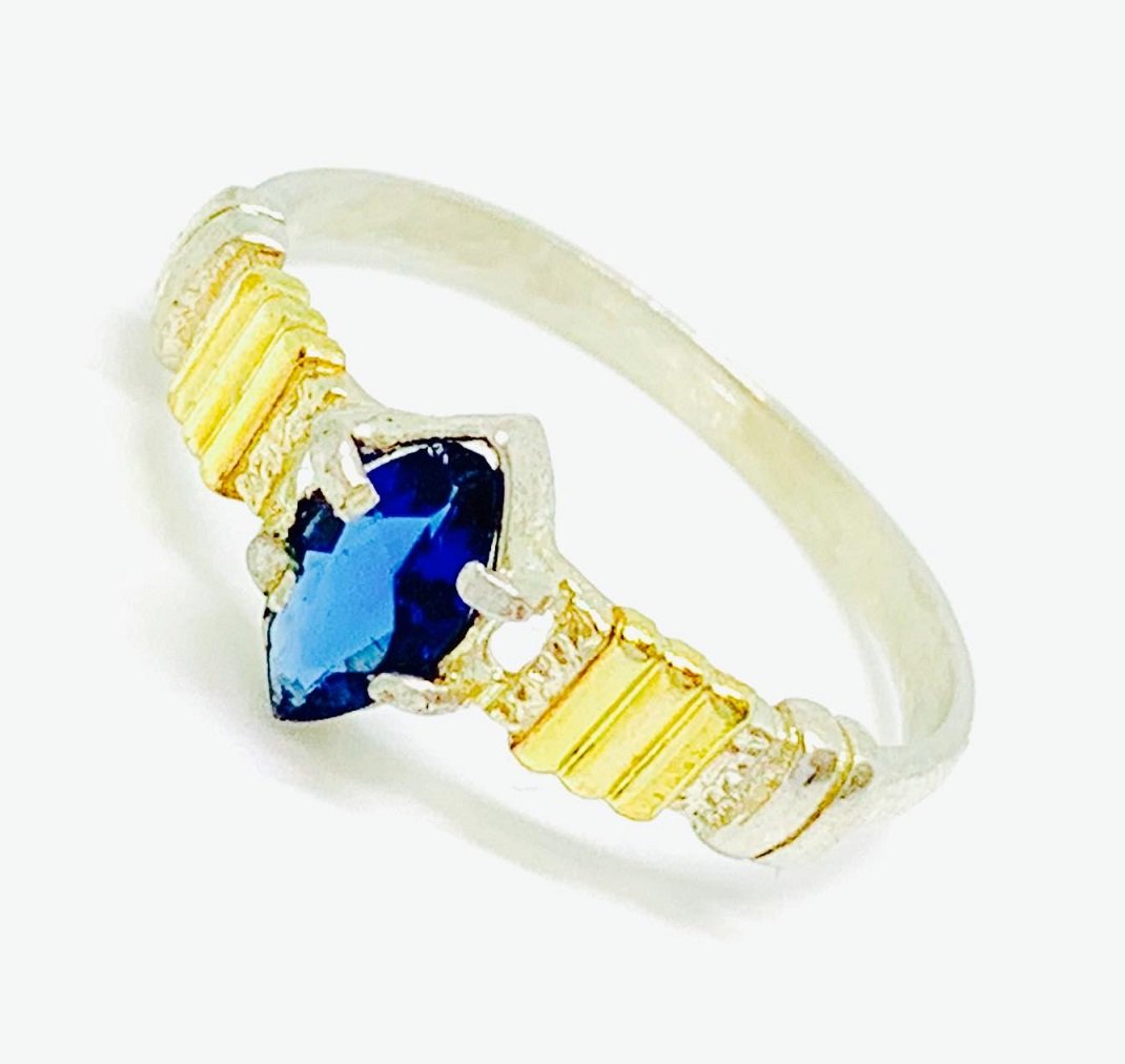 Anillo con Marquesita Zafiro Plata y Oro