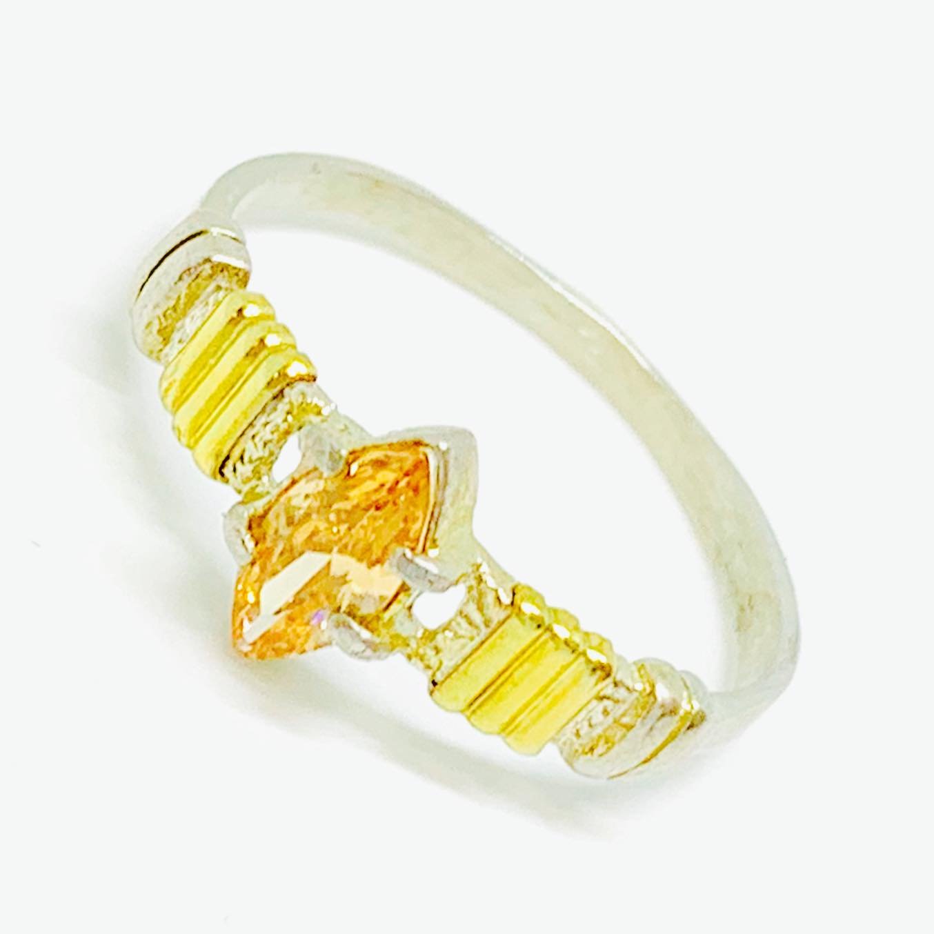 Anillo con Marquesita Ambar Plata y Oro