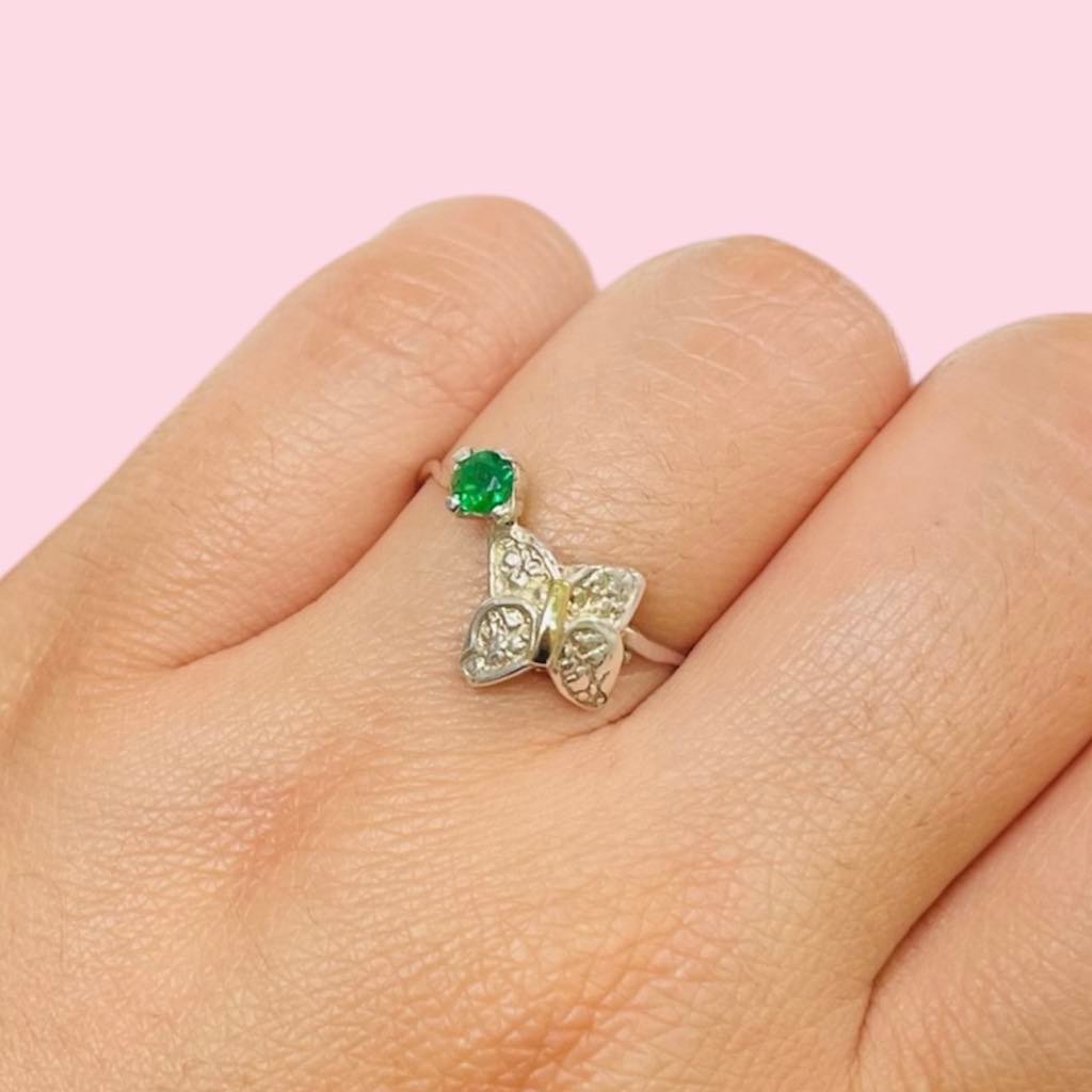 Anillo Mariposa Esmeralda Plata 925 y Oro